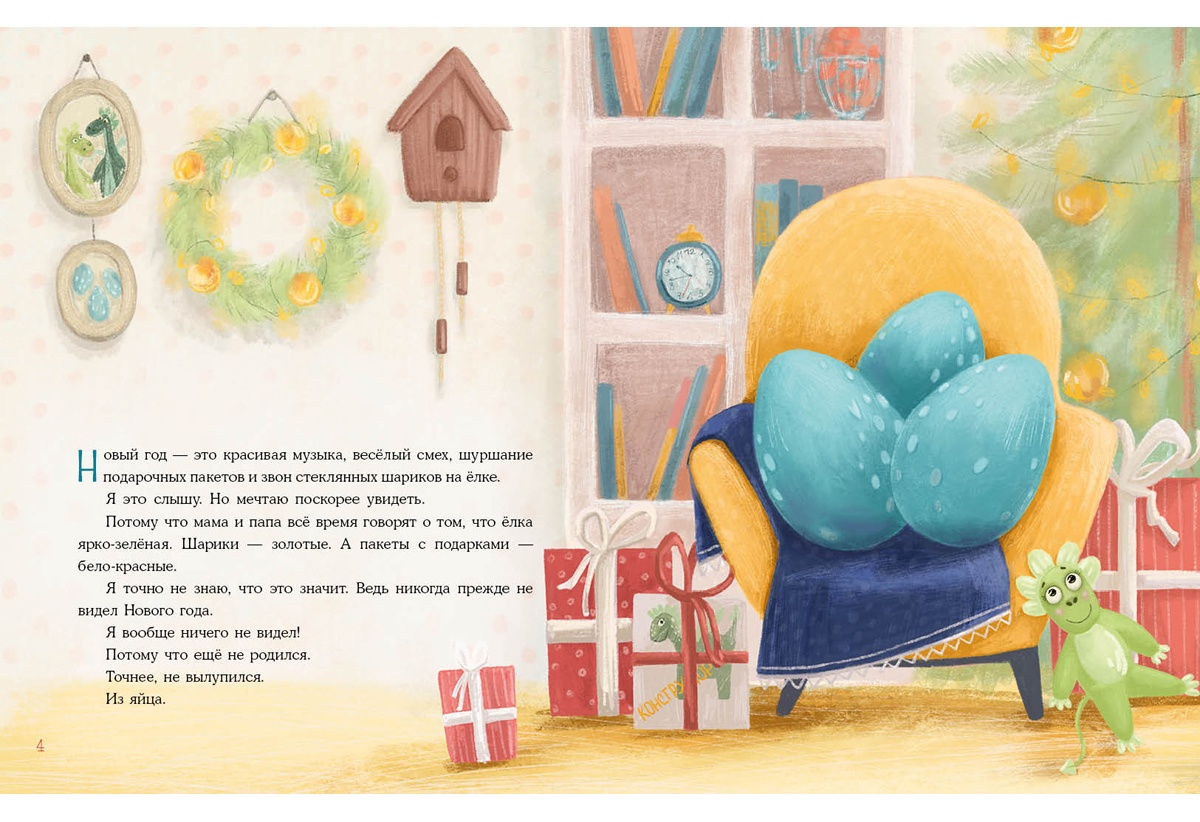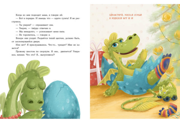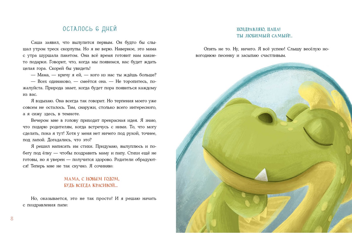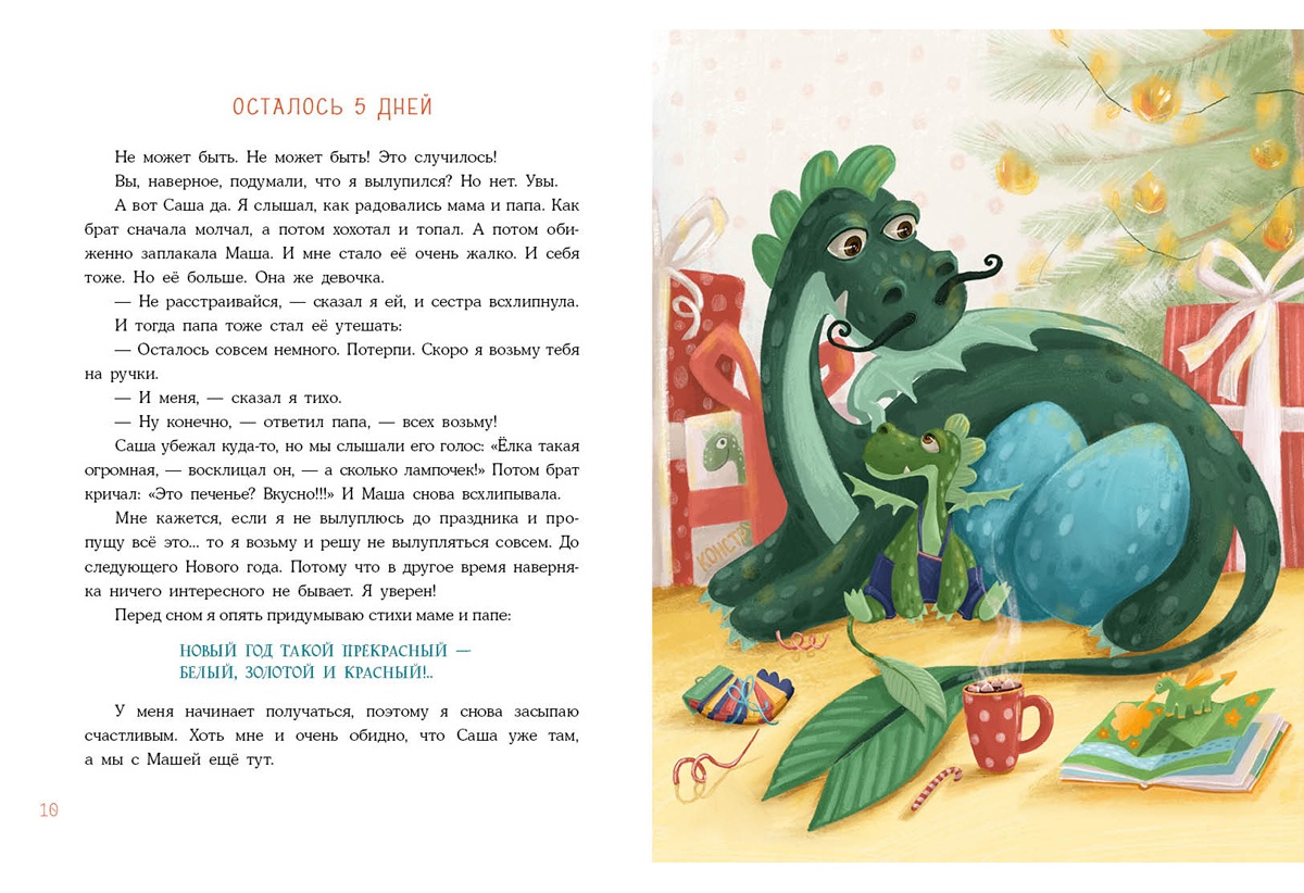 КнигиНовый год — весёлый праздник для всех. Даже для драконов! Маленький дракончик по имени Паша очень хочет успеть вылупиться из яйца до новогоднего торжества. Он с нетерпением ждёт встречи с родителями, братом и сестрой, а ещё хочет поскорее узнать, что такое зима и как выглядит ёлка. Будет ужасно обидно, если он опоздает!..