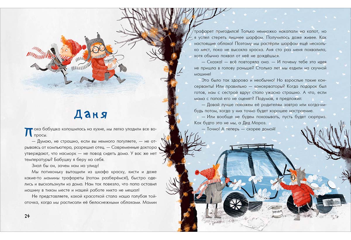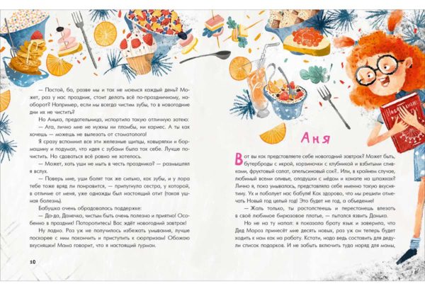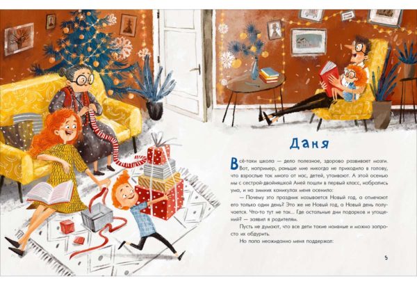КнигиУ непосед-двойняшек Ани и Дани начались долгожданные зимние каникулы. Как жаль, что Новый год всего раз в году! Но что если праздновать его- каждый день? Ух, сколько тогда подарков можно будет получить от Деда Мороза! Попросить у него и 3D-ручку, и кучу кукол Барби, и платье для мамы- А ещё — каждый день есть бабушкины тортики и салат оливье. Вся семья включается в необычный эксперимент, но очень скоро Аня и Даня понимают, что всё идёт не так, как ожидалось!