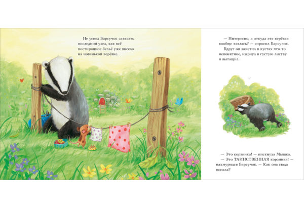 КнигиБарсучок и его друзья живут в лесу, и здесь всё время происходит что-то интересное. Сегодня день начался с необычных находок: зверята обнаружили в лесу сначала верёвку, затем большую плетёную корзину и, наконец, огромный кусок яркой ткани. Откуда же взялись эти вещи? Можно ли забрать их себе, чтобы использовать в хозяйстве, или у них есть владелец? Друзья узнают это очень скоро — а ещё поймут, что кое-кому очень нужна их помощь…