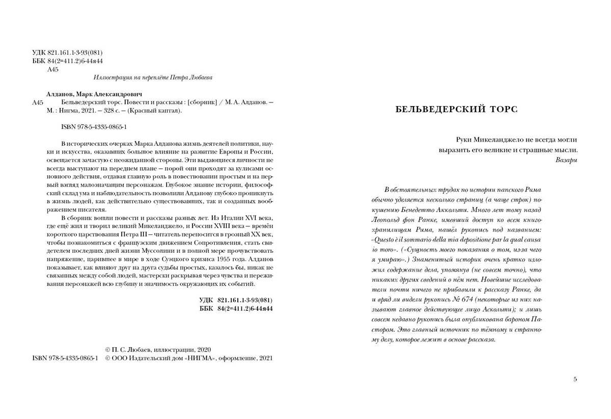В сборник вошли повести и рассказы разных лет. Из Италии XVI века, где ещё жил и творил великий Микеланджело, и России XVIII века — времён короткого царствования Петра III — читатель переносится в грозный XX век, чтобы познакомиться с французским движением Сопротивления, стать свидетелем последних дней жизни Муссолини и в полной мере прочувствовать напряжение, царившее в мире в ходе Суэцкого кризиса 1955 года. Алданов показывает, как влияют друг на друга судьбы простых, казалось бы, никак не связанных между собой людей, мастерски раскрывая через чувства и переживания персонажей всю глубину и значимость окружающих их событий.