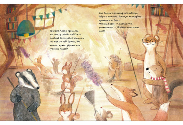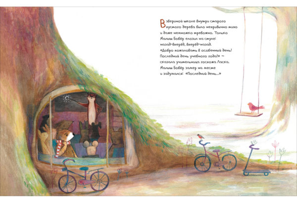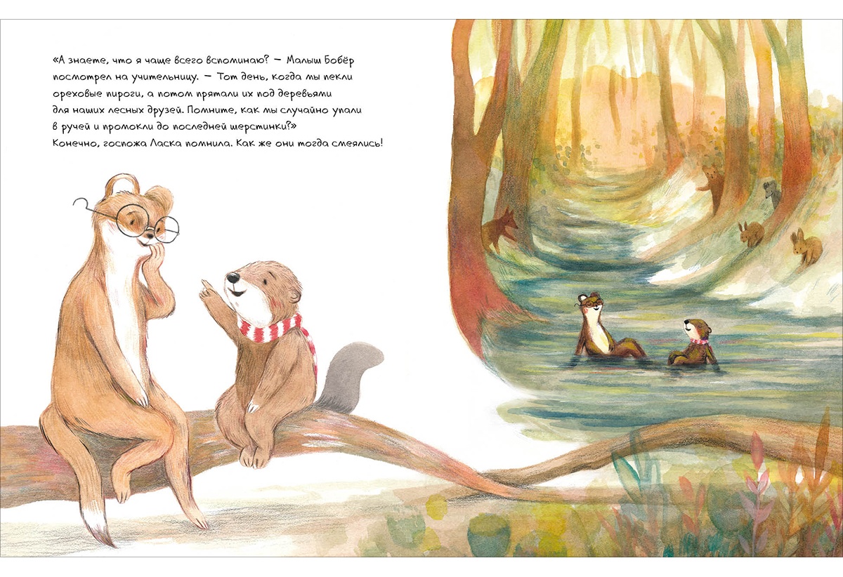 КнигиВот и настал последний день учёбы. Все зверята счастливы и ждут каникул. И только Малыш Бобёр грустит — он не хочет прощаться. К счастью, любимая учительница знает, как его развеселить.