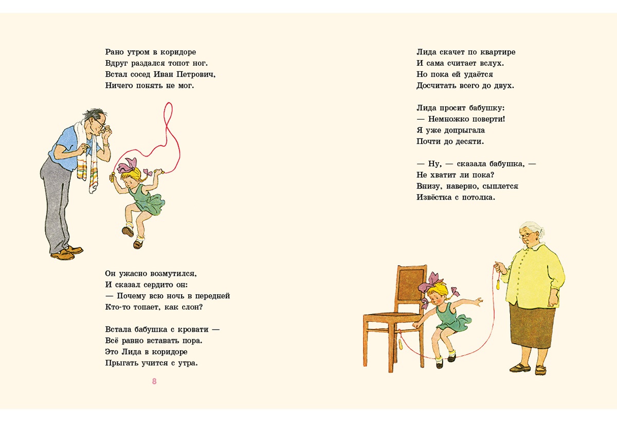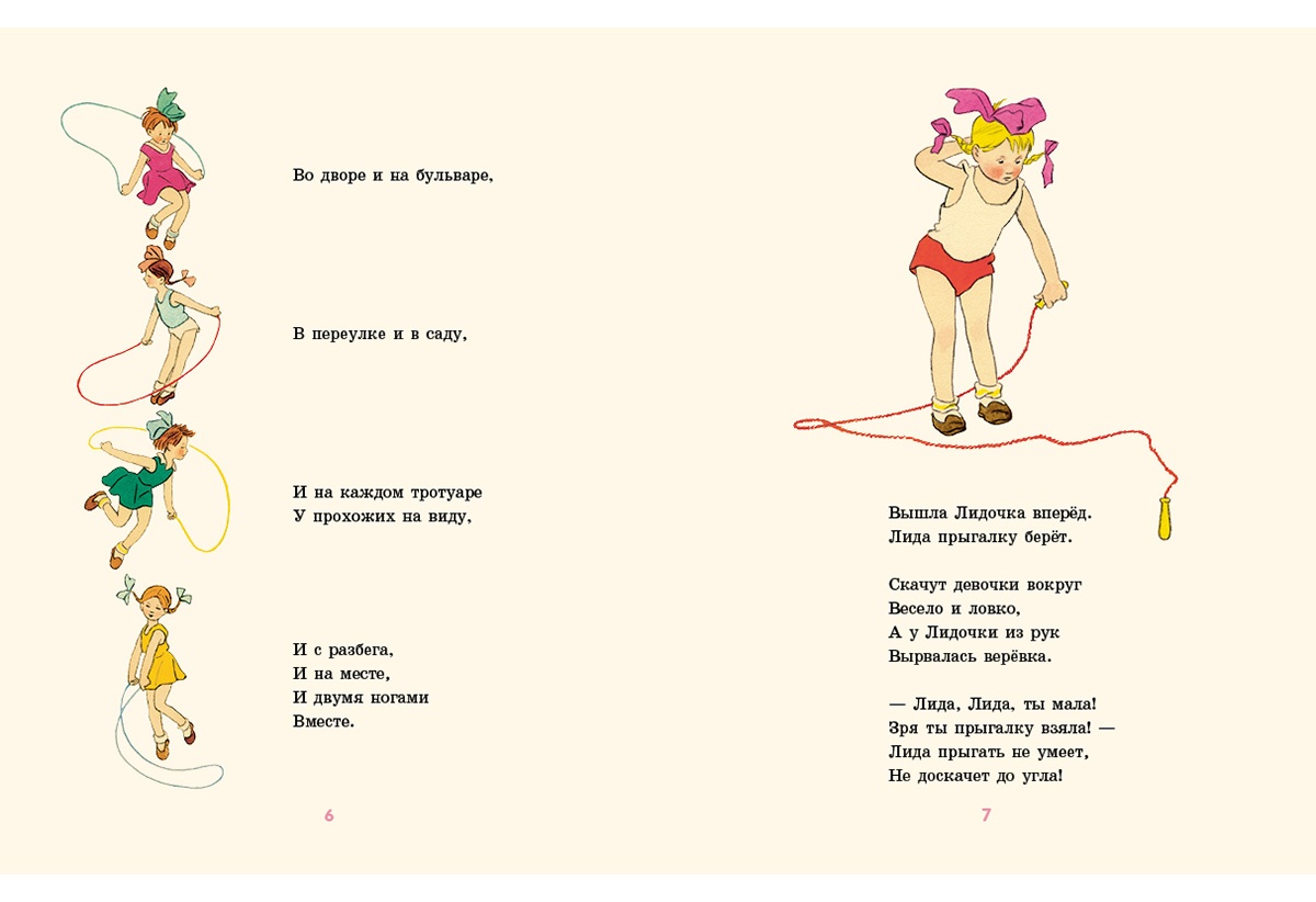 КнигиПеред вами одно из самых известных стихотворений знаменитой детской поэтессы Агнии Львовны Барто. Весёлая и задорная девочка Лида так хотела научиться прыгать через верёвочку, что перебудила всех своих соседей, и всё-таки у неё получилось. Да ещё как!