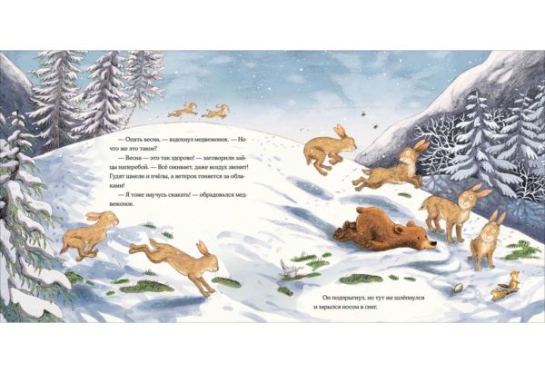 КнигиМаленький медвежонок родился в берлоге зимой и только начинает знакомиться с миром вокруг. Ему очень хочется найти друга, но все вокруг — птицы, зайцы и даже волки — готовятся к приходу весны и очень заняты. Но что же это такое — весна? И как к ней подготовиться?.. Медвежонок продолжает удивительное путешествие по родному лесу и ещё не подозревает, что его ждёт сюрприз…
