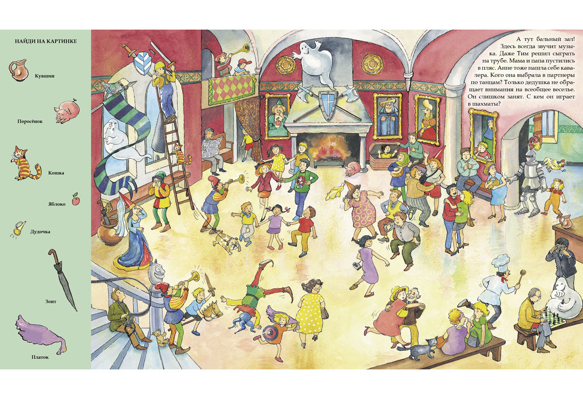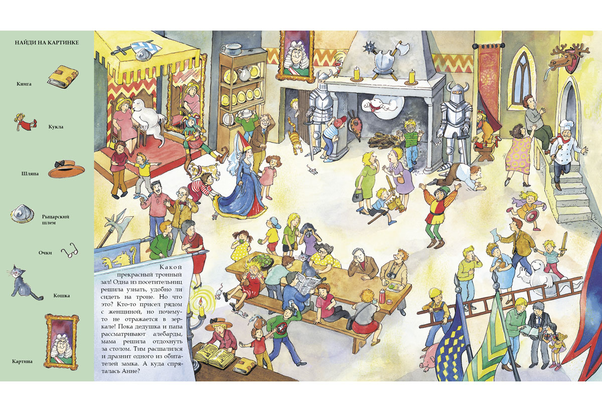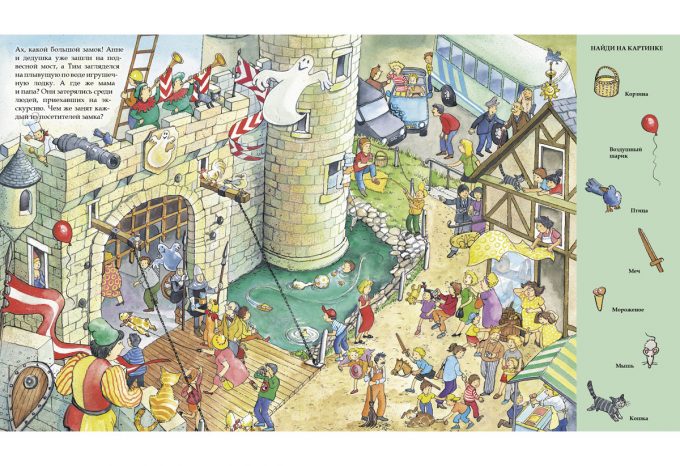 Главное – внимательно разглядывай рисунки! И найди на страницах книги рыцарские доспехи и другие предметы, которые находятся в замке.