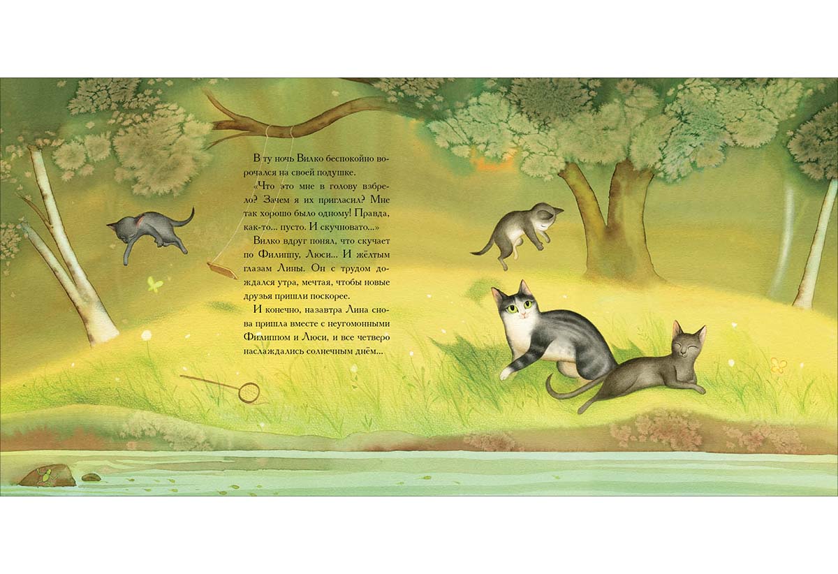 КнигиЧудесным летним днём, когда кот Вилко наслаждался покоем, в его сад зашла кошка с котятами. Познакомившись с незваными гостями, Вилко решился на прогулку. Дружная компания стала проводить вместе день за днём. Лето пролетело весело и незаметно. Что же ждёт их осенью?