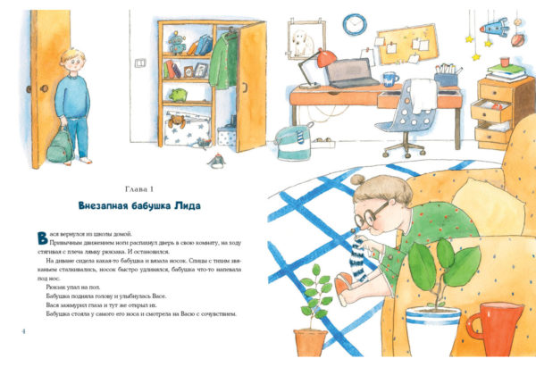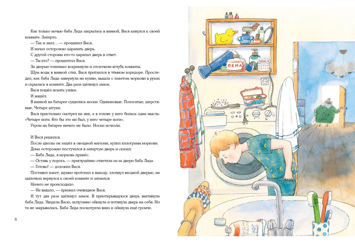 КнигиУ Васи появилась внезапная бабушка. Вот вы спросите: как это — внезапная? Легко! Пришёл Вася из школы, а на диване в комнате сидит незнакомая старушка, вяжет полосатый носок, назвалась дальней родственницей. Так и познакомились.