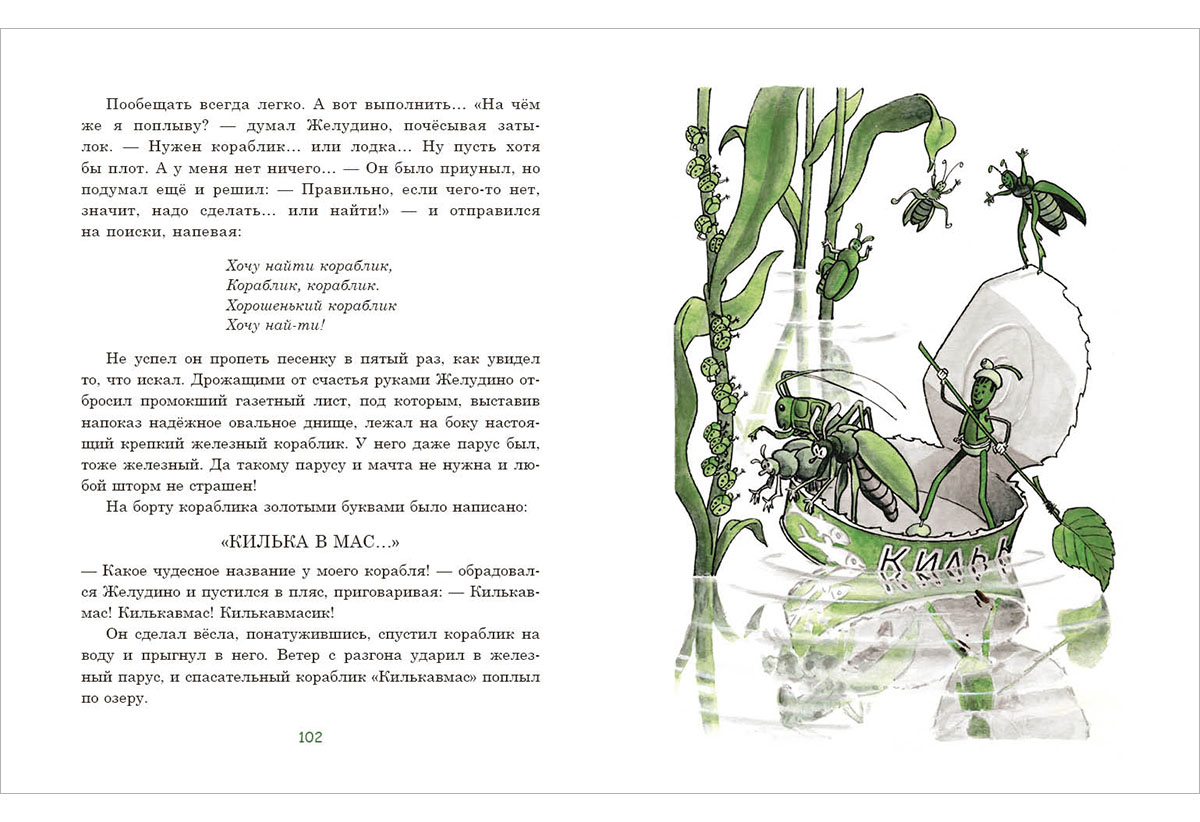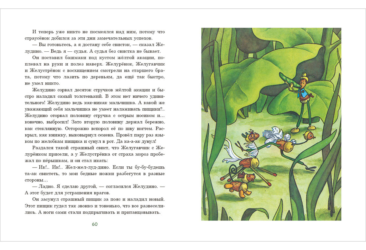 КнигиСказочная история о маленькой девочке Жене и восьми волшебных желудях. Дедушка Жени превратил их при помощи проволоки и спичек, пёрышек и тополиного пуха в мальчика Желудино, страусёнка Желустрёнка, жеребёнка Желурёнка и собачку Желугавчика, да не простых, а живых, самых настоящих. Вы узнаете, как отважные герои боролись с гусеницами в лесу, от кого спасали насекомых и птиц, что такое «Открытие Добрых Глаз» и почему так важно бережно относиться к природе.
