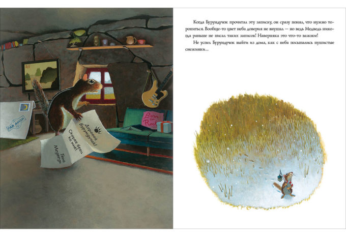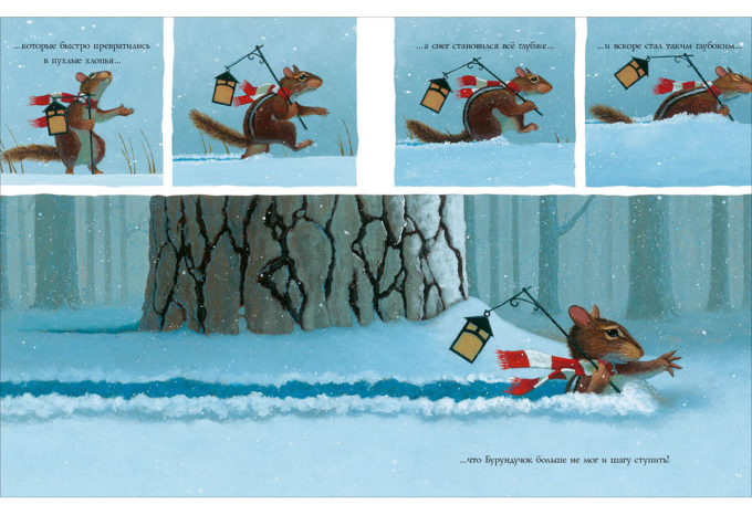 КнигиМедведь редко просит о чём-то своих друзей. И когда Бурундучок получает от него письмо «Скорее беги ко мне!», он понимает, что другу нужна помощь! Только вот незадача: на улице начинается метель, и маленькому Бурундучку не пробраться через снежные заносы.