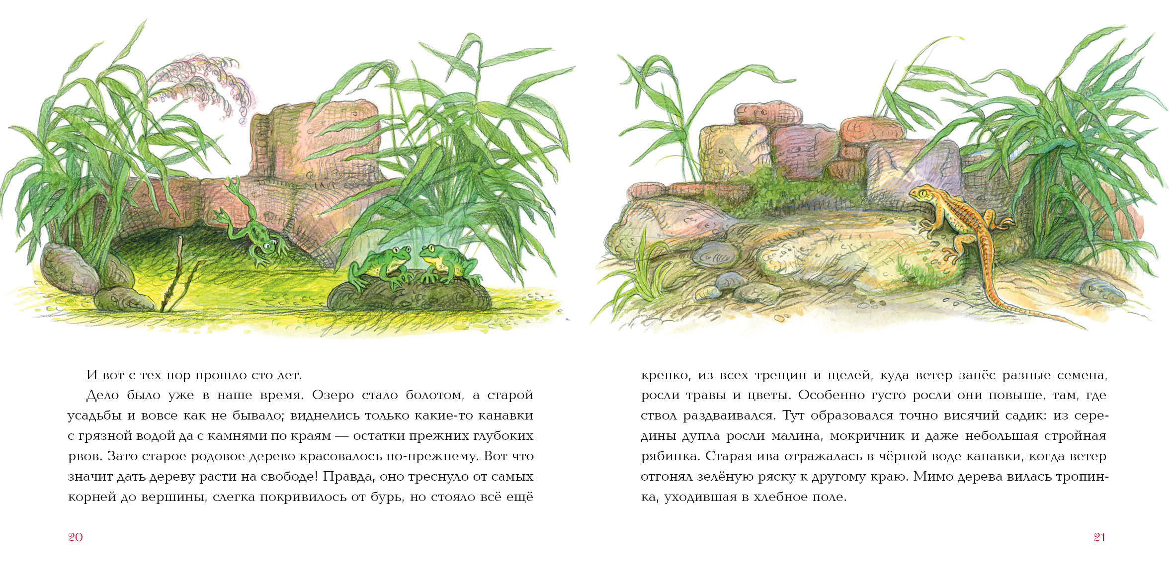 Эта удивительная сказочная история проиллюстрирована выразительными рисунками Ольги Базелян.