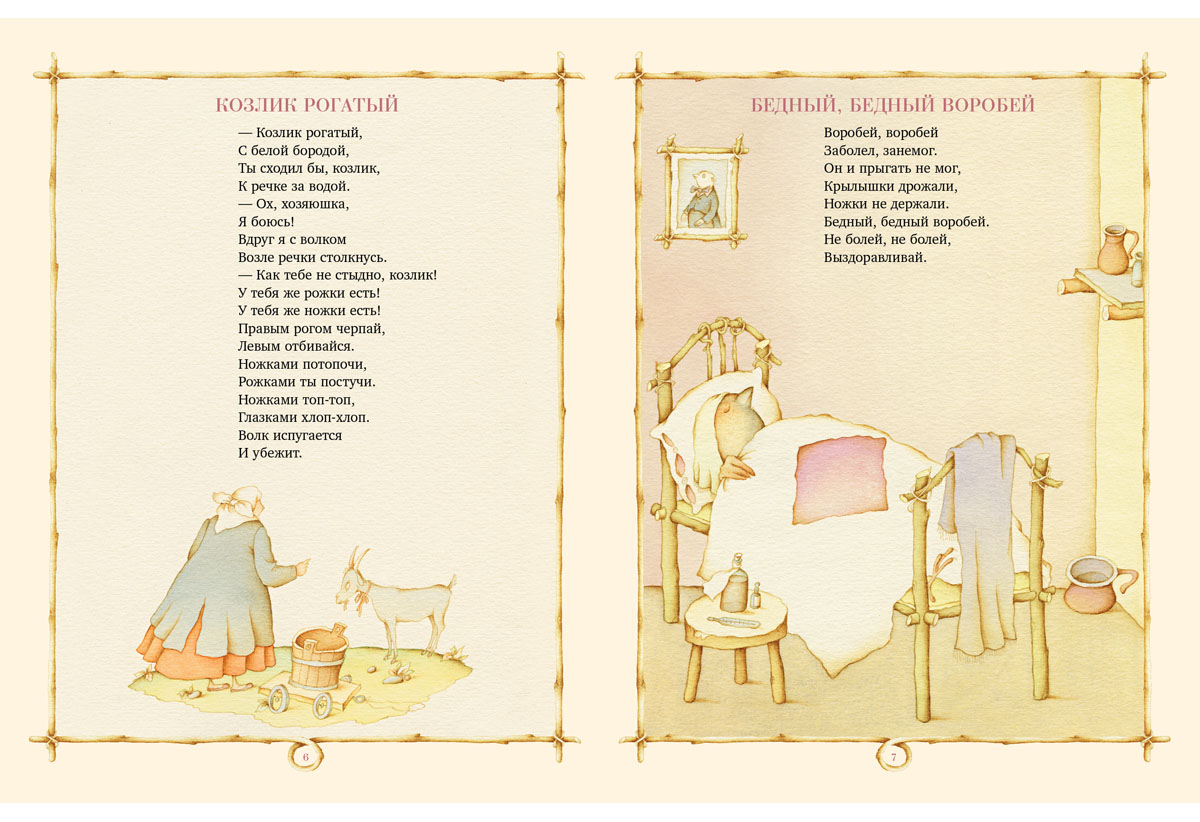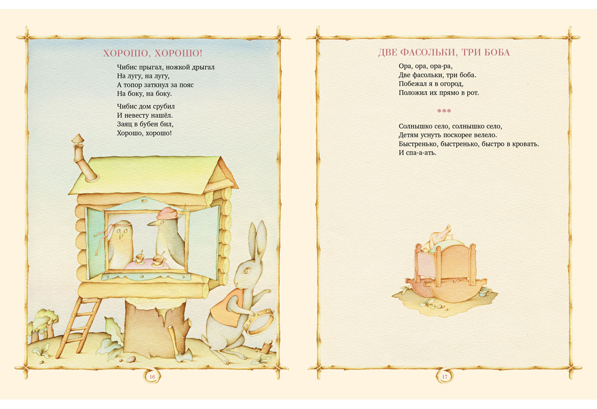Книги«Две фасольки, три боба» — это замечательный сборник коротких литовских народных песенок. Благодаря своей лёгкости и какой-то особой воздушности они отлично подходят для того, чтобы читать малышам перед сном.