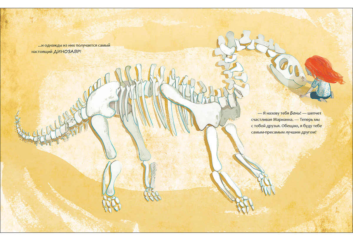 КнигиМаленькая Марианна живёт в городке около моря и мечтает откопать в песке динозавра. И в один замечательный день ей это удаётся! Эх, если бы только динозавр мог ожить и поиграть с Марианной… К счастью, чудеса случаются! И звёздной ночью желание девочки исполняется: она отправляется со своим большим и добрым другом в увлекательное волшебное путешествие…