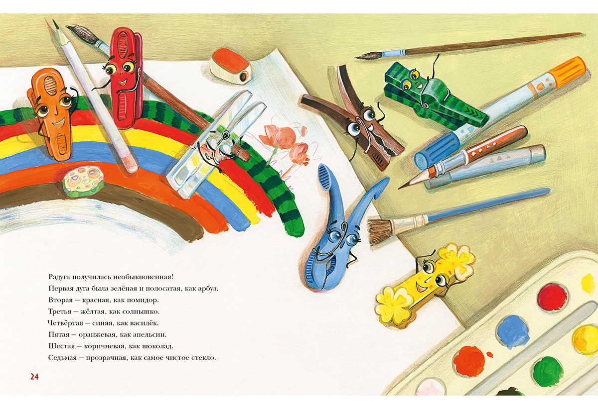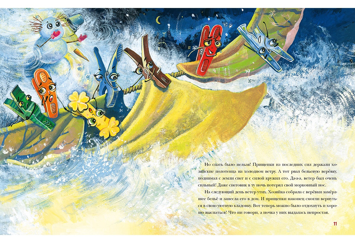 КнигиРазноцветным прищепкам досталась непростая работа. Шутка ли — в снежную бурю крепко держать бельё на верёвке? А что будет, если в самый ответственный момент прищепку пощекочет гусеница? И как это — играть с маленьким человеком в радугу? Все любят приключения! И бельевые прищепки — не исключение!