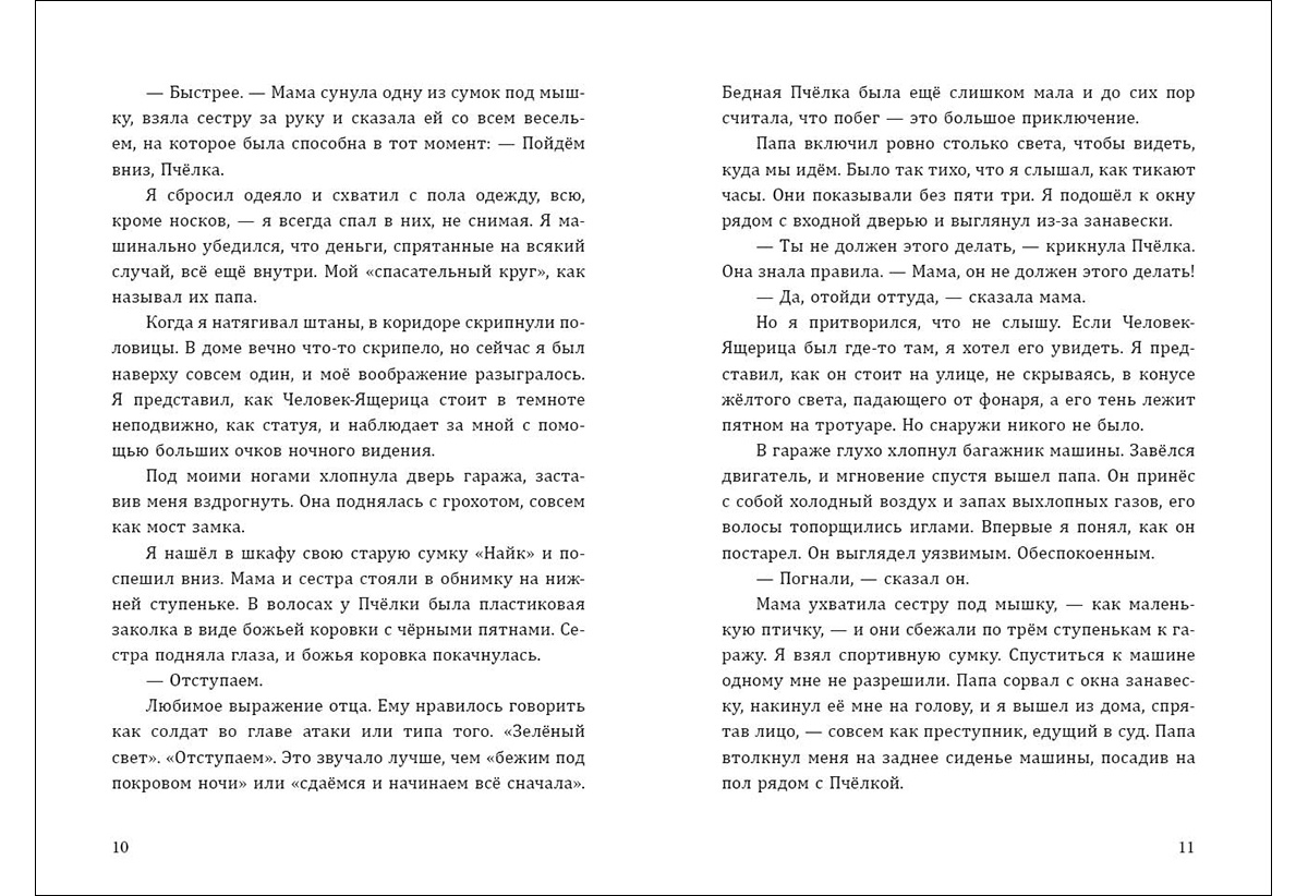 КнигиКогда Игорю было пять лет, его отец стал свидетелем ужасного преступления, и с тех пор за всей его семьёй охотится некто, известный как Человек-Ящерица. Игорь и его родители жили в стольких местах, под таким разными именами, что мальчик даже не помнит своего настоящего имени. Но сейчас ему двенадцать лет, и он хочет нормальной жизни: пойти в школу и завести друзей.