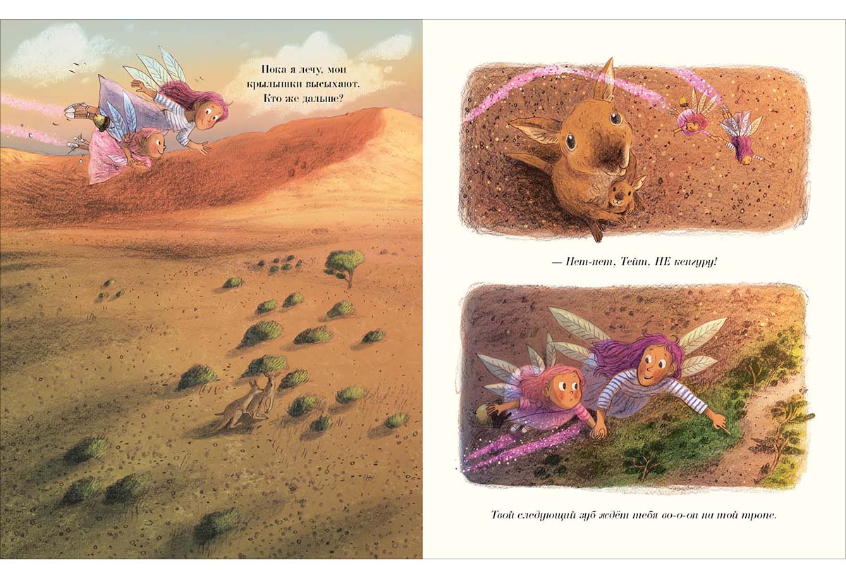 КнигиА знаешь ли ты, кто такие зубные феи? Когда у малыша выпадает зуб, фея забирает его и взамен оставляет монетку. Юная Тейт обучилась всем тонкостям этой непростой работы и готова к своему первому полёту! Вместе со своей старшей сестрой она облетит весь мир, побывает у малыша-бегемотика, крокодильчика и маленькой анаконды, но самое сложное задание ждёт её впереди…