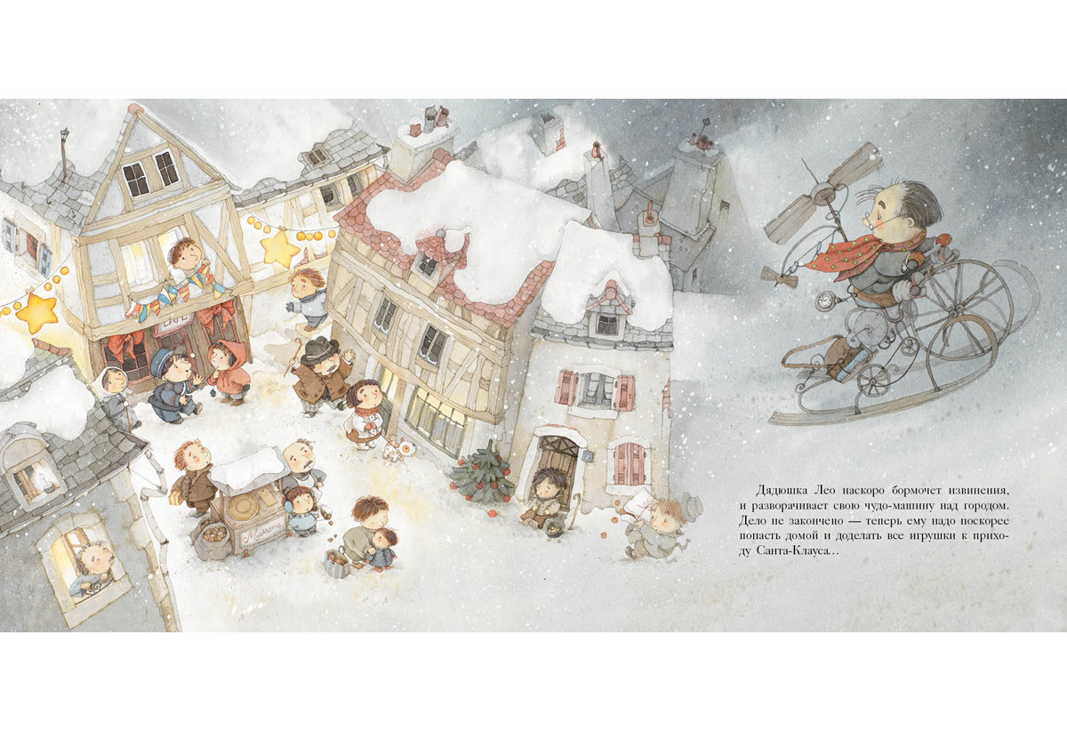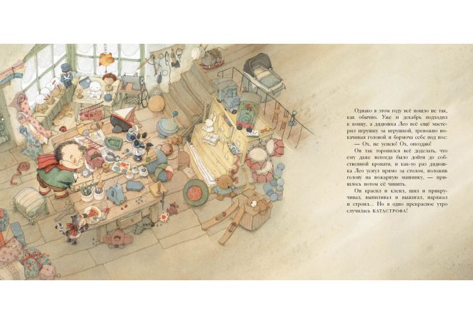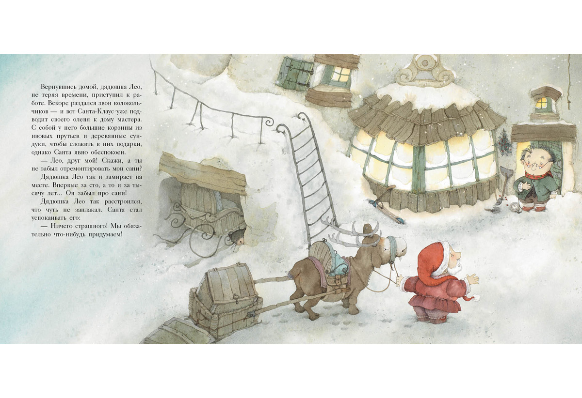 КнигиГде Санта-Клаус берёт новогодние подарки для всех детей в мире? Ведь он работает всего один день в году! Наверное, кто-то помогает ему в его важном и ответственном деле? Вы угадали — у великого волшебника есть помощник, мастер кукол по имени дядюшка Лео. Именно он готовит подарки для ребят — и даже ремонтирует сани самого Санта-Клауса. В доме у доброго дядюшки Лео настоящая сказочная лаборатория! И на этот раз игрушки у него получились просто замечательные… а вот сани он отремонтировать забыл!..