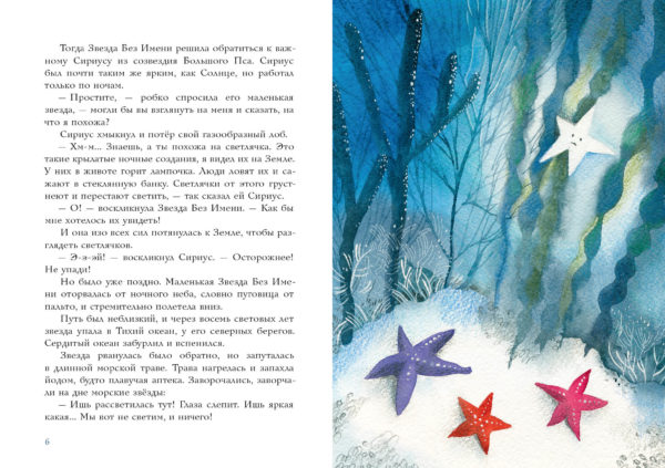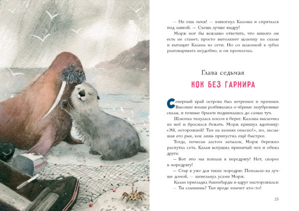 КнигиЖил-был Калан, который мечтал о необыкновенных приключениях. Однажды, отдыхая в мягких водорослях на океанском побережье, Калан заметил упавшую звезду и сразу почувствовал, что она — живая! А ещё — что она попала в беду и надо спешить ей на помощь! Положив звезду в карман своей шкурки, Калан задумался — как вернуть её на небо? Лунная дорожка! — подсказала ему звезда, и Калан бесстрашно поплыл по взволнованному океану… Наконец звёздочку забрали домой, и так бы и закончилась эта удивительная история, если бы в неё не вмешался жадный и глупый кок Калоша…