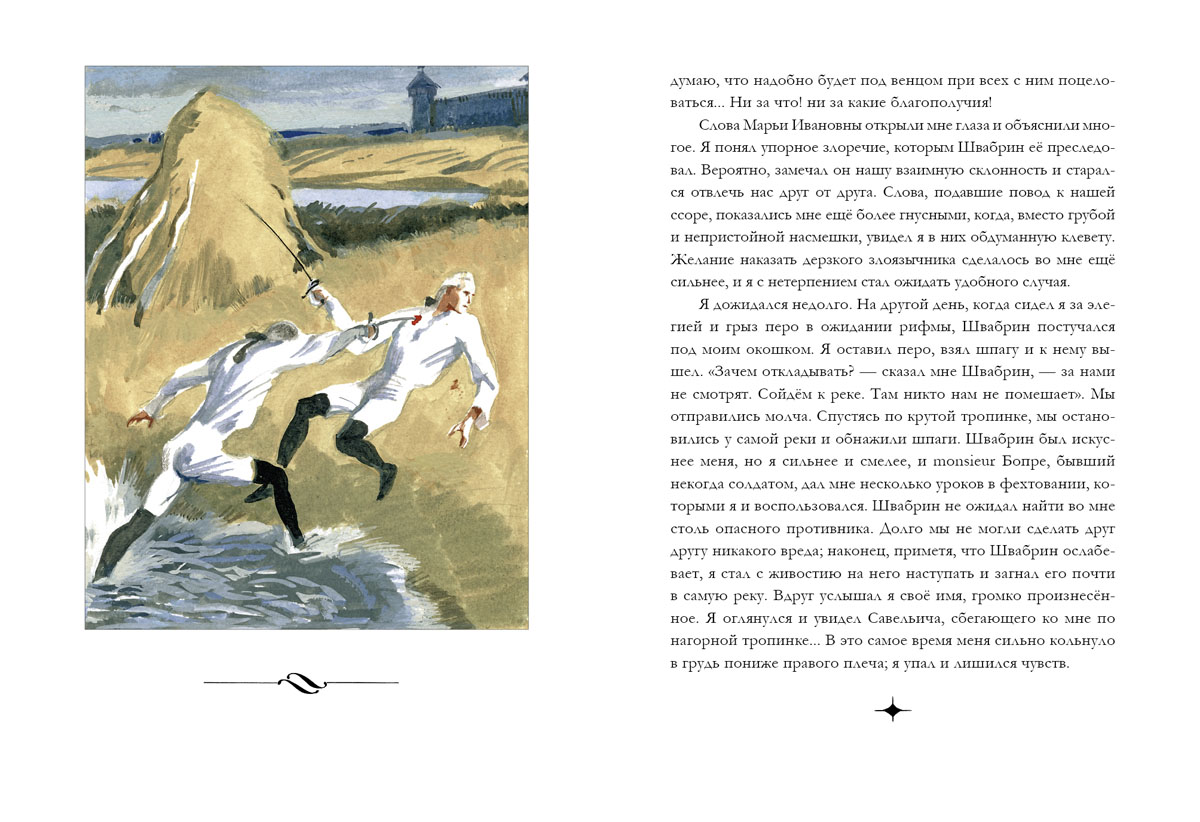 В повести «Капитанская дочка» А. С. Пушкина исторические реалии умело переплетены с художественным вымыслом. События разворачиваются во время Крестьянской войны 1773-1775 годов. От лица молодого дворянина Петра Гринёва автор описывает жестокое и беспощадное восстание крестьян под предводительством Емельяна Пугачёва. Это произведение о чести, о любви и благородстве, о том, что даже в самые тяжёлые времена нужно оставаться человеком.