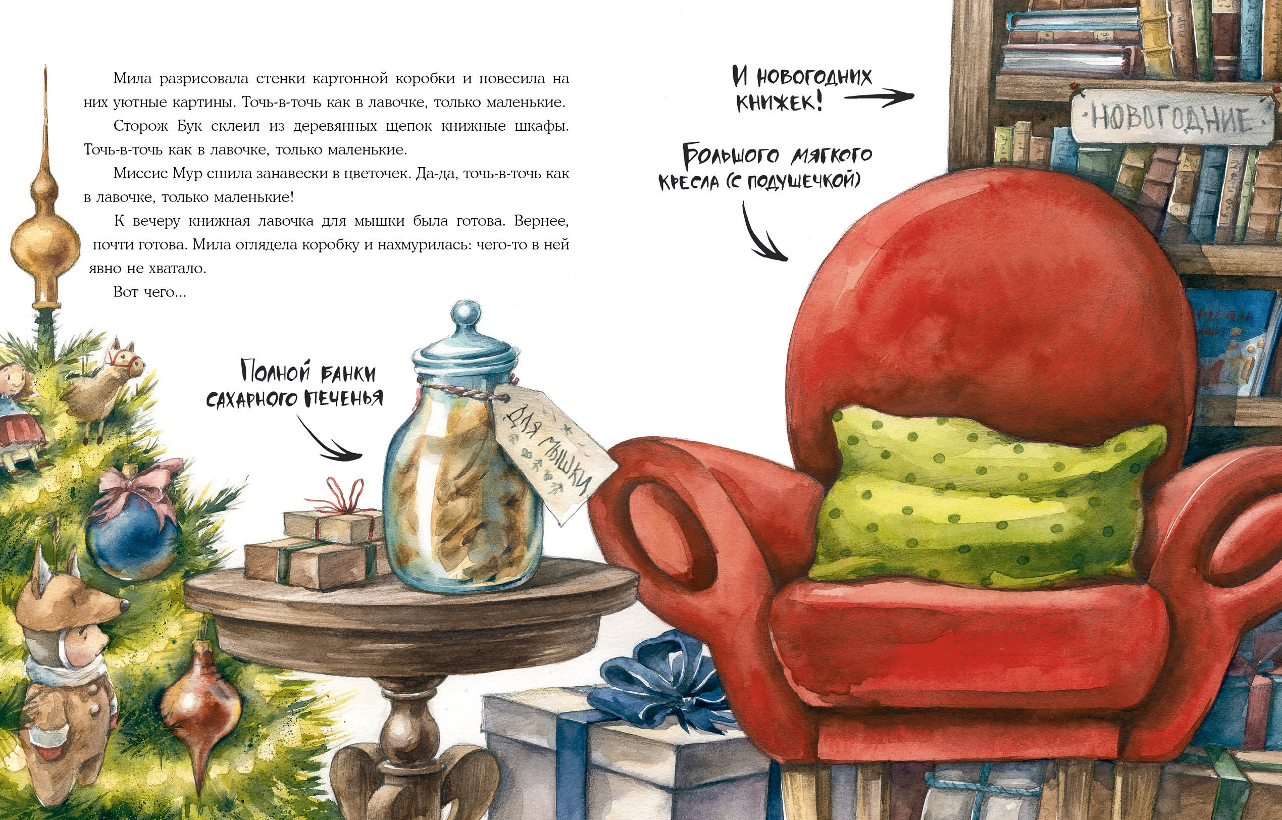 КнигиМила очень любит проводить время в книжной лавочке миссис Мур. Но однажды, накануне Нового года здесь с самого утра что-то пошло не так. На книжной полке хозяйка обнаружила крошечные следы. Поднялся настоящий переполох! Как же избавиться от мышки? Закрыть магазинчик до весны или поставить мышеловку? И тут у Милы появляется замечательная идея!