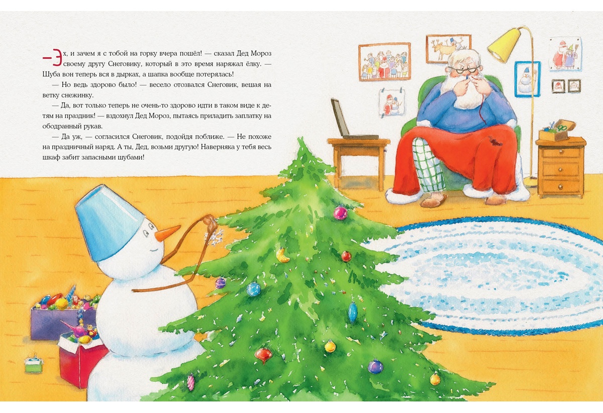 КнигиСкоро Новый год, а Дед Мороз в растерянности — вчера он катался с горки со своим другом Снеговиком и порвал шубу, а шапку и вовсе потерял! Что теперь надеть на праздник? Попросил о помощи заморских коллег. Те прислали свои костюмы, но Деду Морозу ни один не подошёл — непривычные, неудобные. И в лавке маскарадных костюмов ничего подходящего не нашлось — ну не Оленем же одеваться… Кто же поможет Деду Морозу подготовиться к празднику?