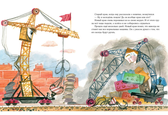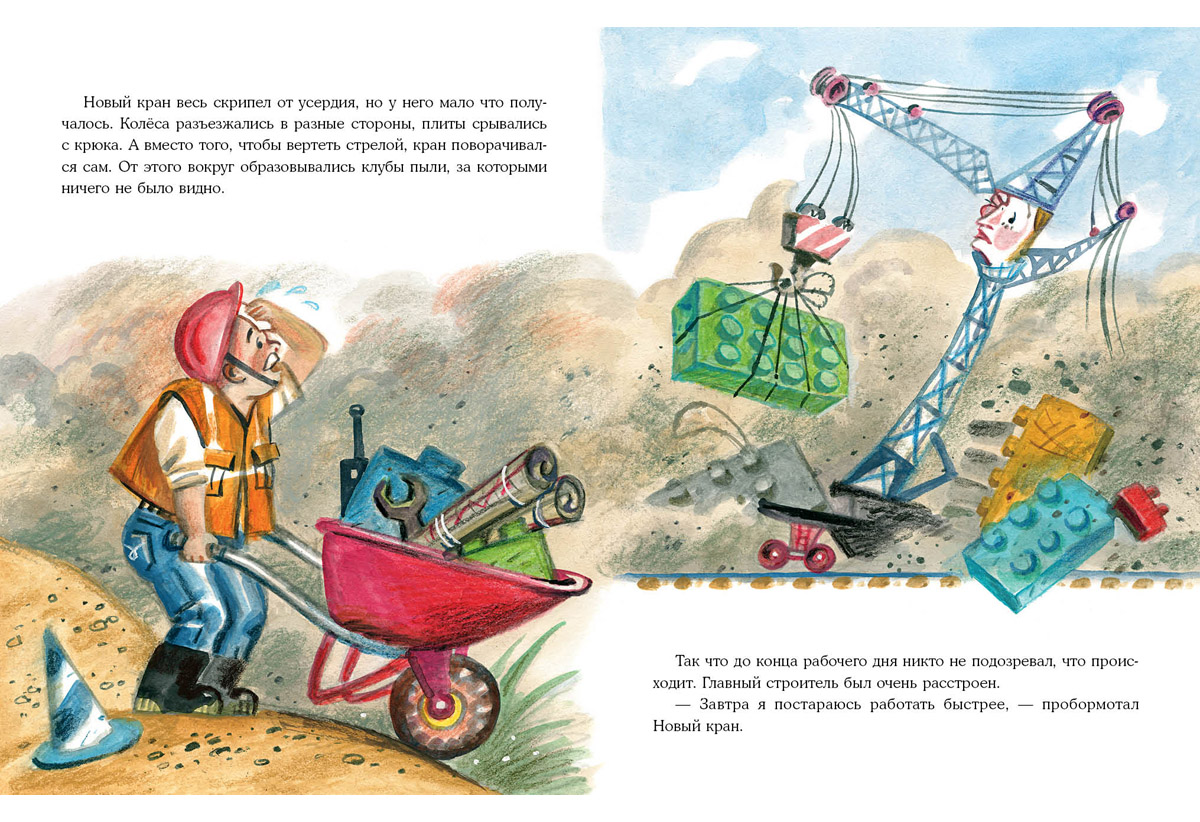 КнигиКак быть, если новенький кран, который привезли на стройку, совсем не умеет поднимать грузы? То колёса разъезжаются, то плиты не держатся на крюке, да и сам он очень тонкий и лёгкий- Главный строитель и все машины на стройке в недоумении: кто-то ругает новичка, кто-то даёт советы. А бедняга старается изо всех сил, но у него ничего не получается! Но что если кран на самом деле- и не кран вовсе?