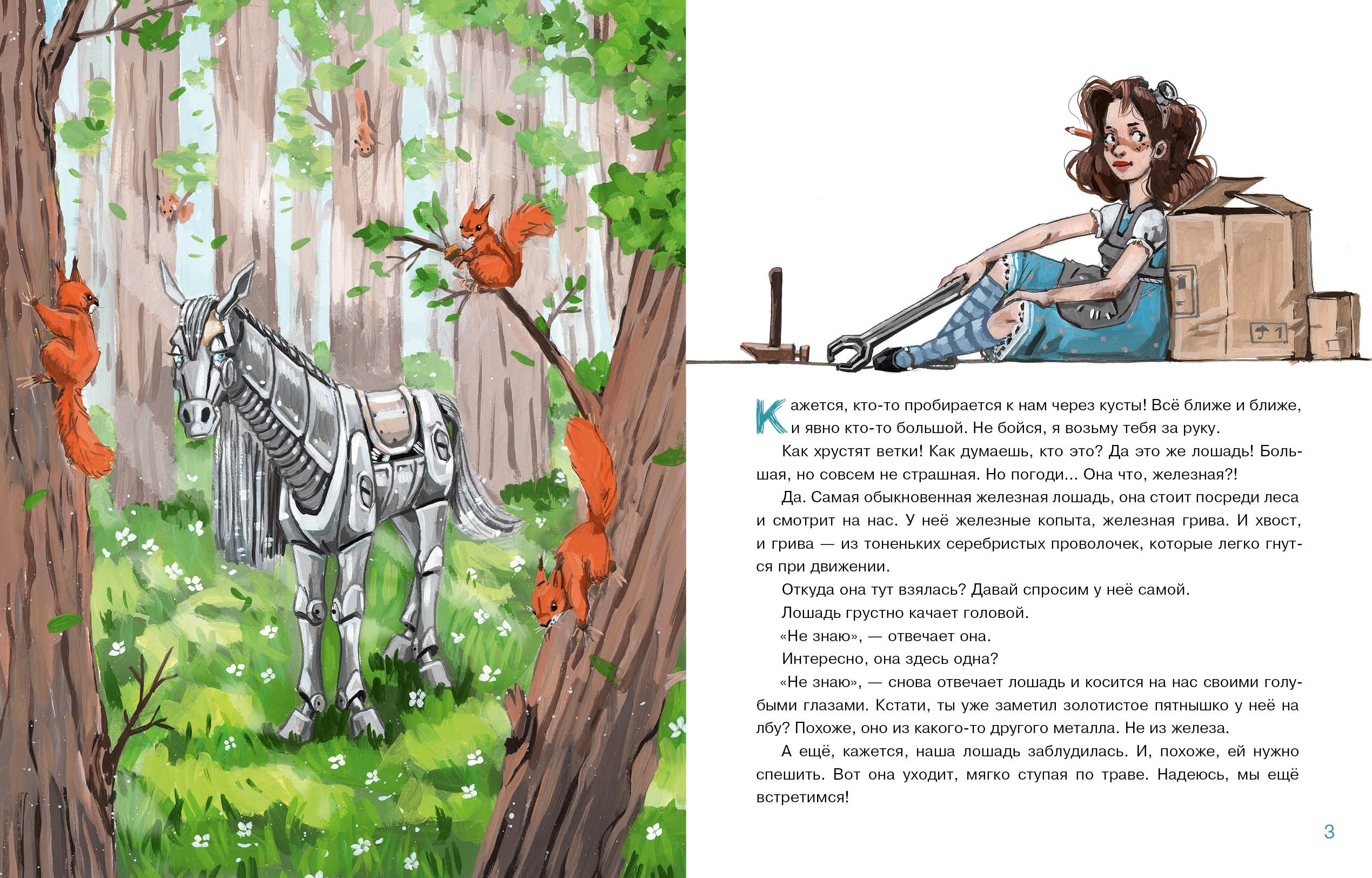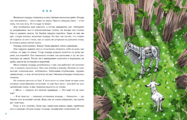 КнигиОднажды посреди леса появилась железная лошадь. Она не знала, как сюда попала и как её зовут! Никаких подсказок — только загадочная инструкция под седлом. И всё бы ничего, но лошадь захромала, и теперь ей нужна помощь. Но кто сможет помочь железной лошади? Ветеринар? Или автомеханик?