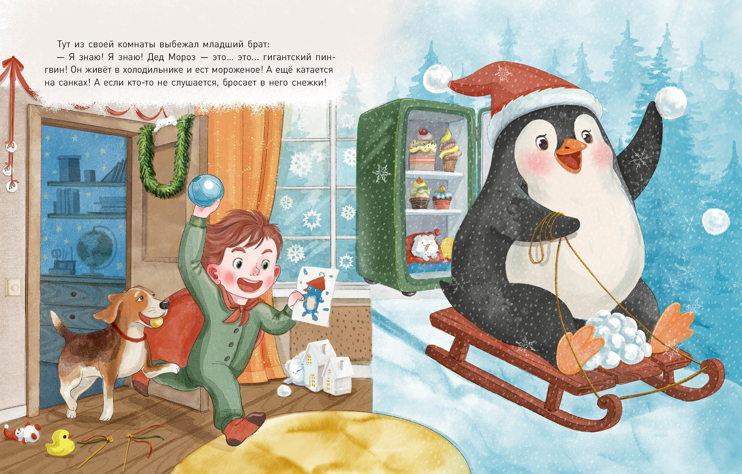 КнигиВоспитательница детского сада рассказала детям, что в разных странах Деда Мороза называют по-разному. Аня задумалась: кто же такой Дед Мороз на самом деле? Бабушка считала, что это дух зимы, дедушка говорил, что он волшебник. Папа утверждал, что это добрый человек, а мама думала, что он почтальон. А вот младшему брату он казался огромным пингвином! Но Аня так и не смогла разгадать эту загадку. Тогда она решила спросить у самого Деда Мороза…