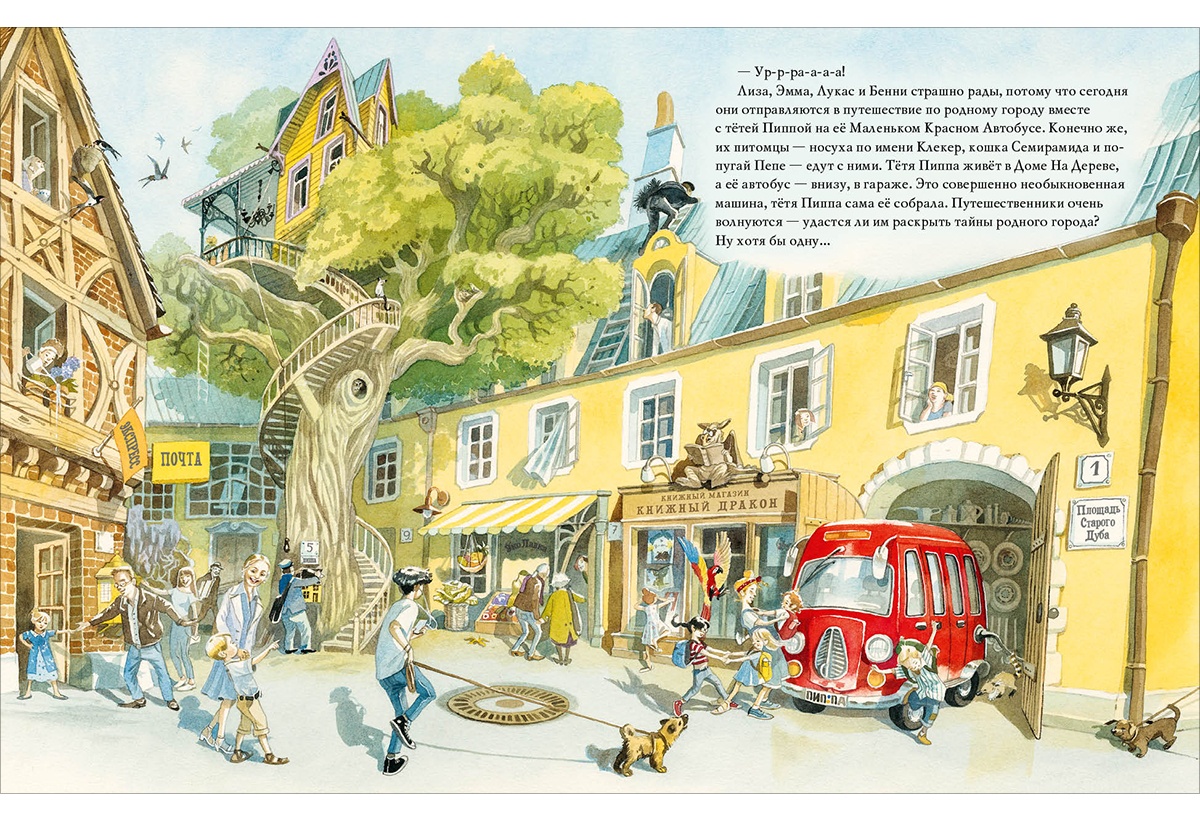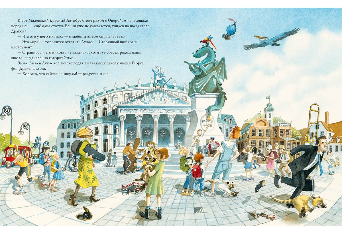 КнигиЗнаешь ли ты историю родного города? А хотел бы открыть все-все его тайны? Сегодня Лизу, Эмму, Лукаса и Бенни ждёт по-настоящему захватывающий день. Ведь они отправляются в увлекательное путешествие по своему городу на Волшебном Красном Автобусе! Ребята побывают на старинном вокзале и Рыночной площади, в библиотеке и оранжерее, послушают оперу и даже увидят настоящий скелет динозавра! Но что это за таинственный дракон постоянно попадается им на пути?