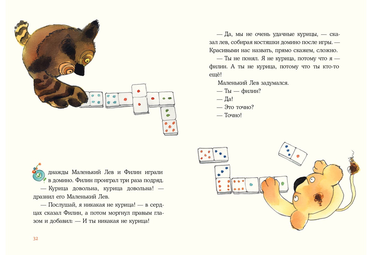 КнигиМаленький Лев живёт в курятнике. Куры любят своего большого и странного детёныша, но не очень-то довольны его воспитанием: лев не умеет кукарекать и не хочет клевать зерно. Однако он прекрасно видит в темноте и может ловить рыбу всю ночь, а ещё ему снятся бескрайние жёлтые поля и гуляющие по ним необыкновенные звери… Кажется, он какая-то неправильная курица! Да и курица ли вообще?..