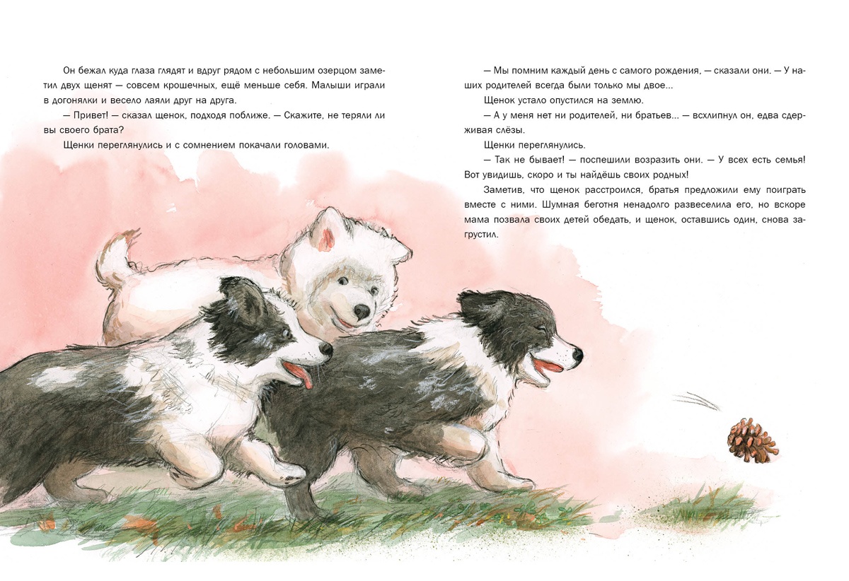 КнигиМаленький щенок жил на улице совсем один и даже имени своего не знал. Однажды он решил попробовать отыскать родителей. Весь день бродил щенок по городу, встретил множество новых знакомых, но среди них не было ни мамы, ни папы. Неужели он никому не нужен? Или всё-таки ему повезёт и он найдёт любящую семью?..