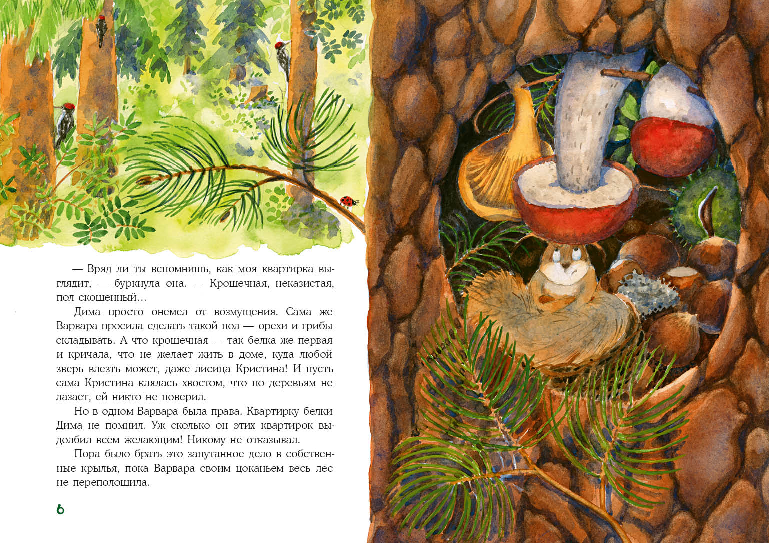 КнигиПорой в лесу может потеряться шишка или гриб. Но чтобы исчезло целое дупло — такого ещё не было! И кто бы мог подумать, что это случится с дуплом сварливой белки Варвары! Может, кто-то затаил на неё зло? Или его привлекли её запасы из пятидесяти, ста или даже миллиона орехов? А может, лоси начали лазить по деревьям? Чтобы раскрыть это небывалое преступление, дятел Дима и филин Филя отправляются по следу.