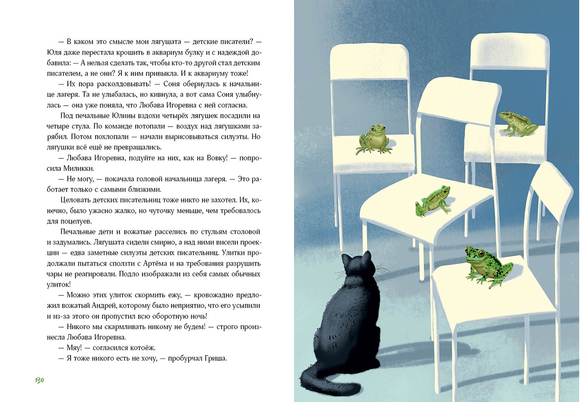 КнигиСоня в свои десять лет никогда не была в лагере и не хотела там оказаться. Но родители решили за неё. Карелия, озёра, леса… Кто же знал, что в её лагере очень строгие правила: нельзя иметь при себе телефон, нельзя гулять ночью и обращаться на территории лагеря тоже запрещается! Ой, это правило не для неё, а для оборотней? Постойте, какие ещё оборотни! Похоже, Соне не удастся заскучать без телефона. Девочка встретится с чудесами, хоть они и строго запрещены на территории лагеря. А ещё в их смену в лагерь приехали настоящие детские писатели. Ведь это просто детские писатели, да? Этим летом Соне предстоит подружиться с медвежонком, белкой и стопудовой девочкой-призраком, а ещё убежать от муравьиного коня и встретить настоящего друга! И это Карелия, поэтому лось будет обязательно!