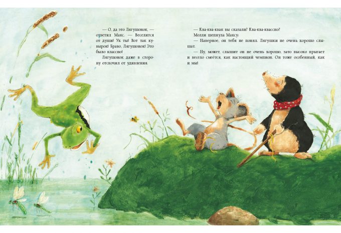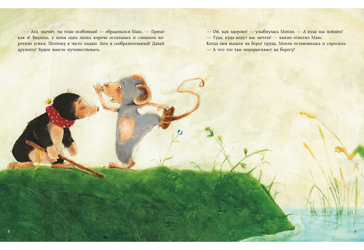 КнигиУ Мышонка Макса одна лапка короче другой, зато он очень сообразительный. Кротик Молли плохо видит, но при этом обладает прекрасным нюхом, а Лягушонок Фред не очень хорошо слышит, однако прыгает выше всех! И лучшие их качества проявляются именно тогда, когда друзья делают что-то вместе — например, путешествуют по миру.
