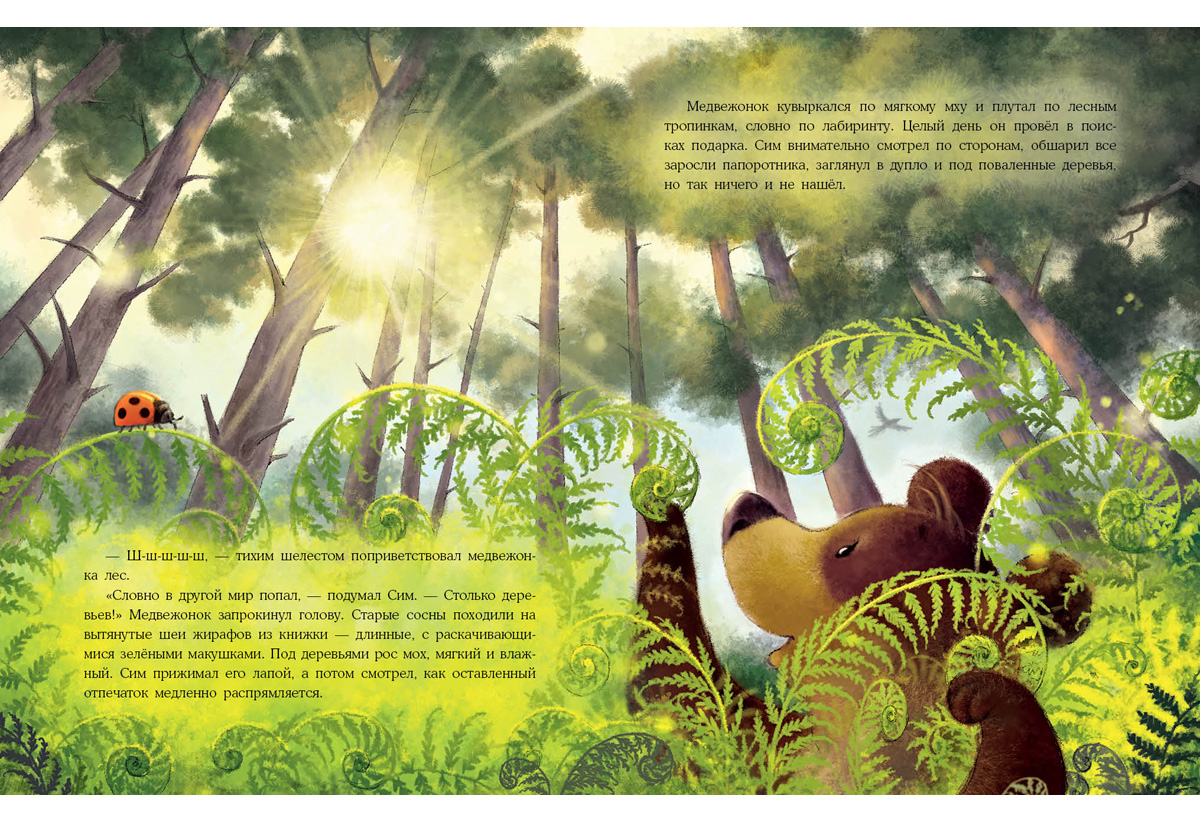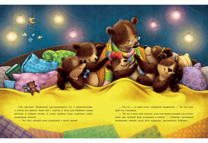 КнигиМедвежата очень любят свою бабушку. На день рождения они всегда готовят ей в подарок что-нибудь чудесное! Но в этот раз медвежонок Сим озадачен: бабушке много лет, а значит, ей уже дарили и лесной мёд, и цветы, и варенье. Чем же её удивить? И Сим отправляется в путешествие, чтобы найти самый необычный подарок для бабушки…