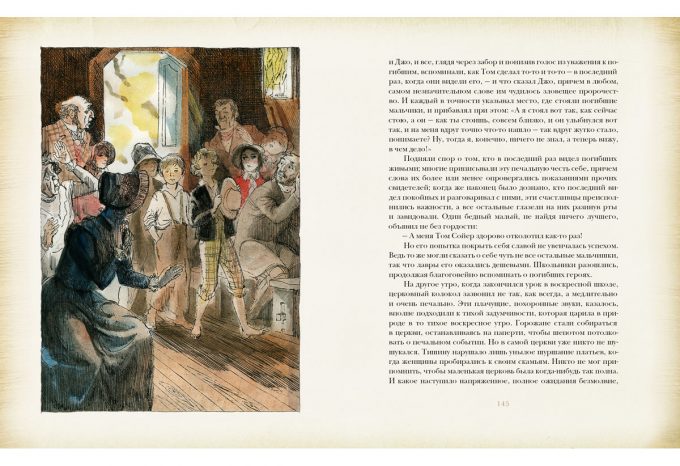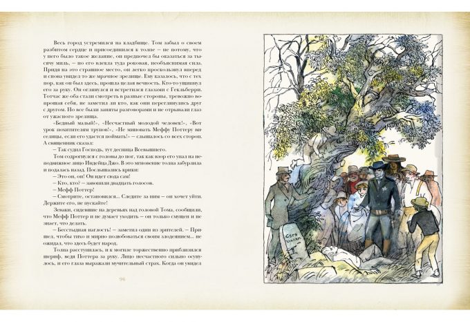 КнигиПеред вами знаменитый роман Марка Твена о приключениях весёлого сорванца Тома Сойера и его друга Гекльберри Финна. Романтические приключения, живой юмор и неожиданные повороты сюжета захватят вас до последней страницы. Попутно вы познакомитесь с жизнью американского городка XIX столетия. А замечательные иллюстрации Германа Алексеевича Мазурина подарят вам прекрасное настроение.