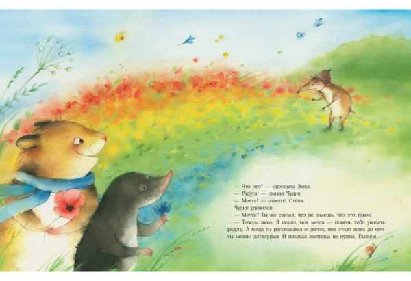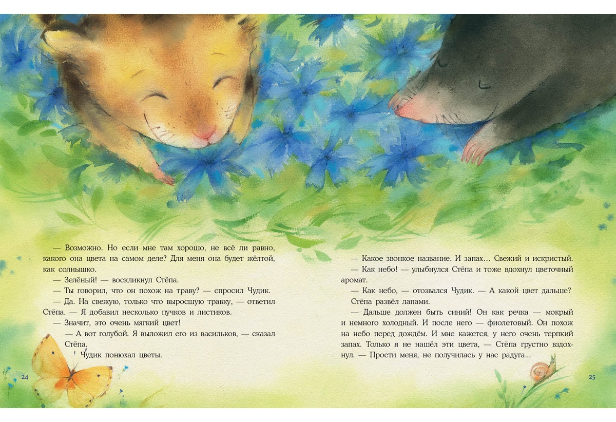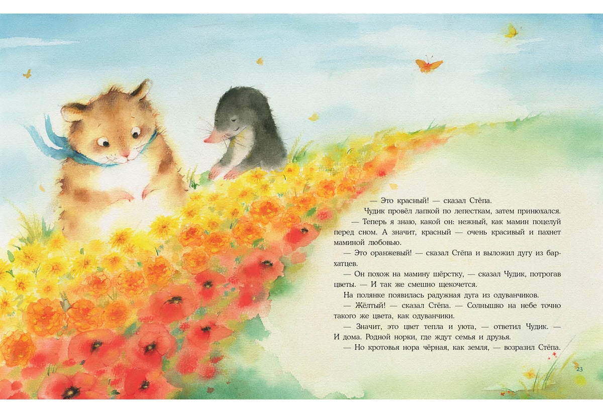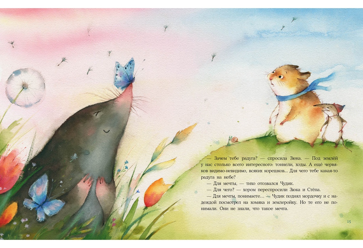 КнигиКротик Чудик мечтает увидеть настоящую радугу. Да вот беда — кроты живут под землёй и почти ничего не видят. К счастью, новый друг Чудика, хомяк Стёпа, очень хочет помочь, и в голову ему приходит необыкновенная идея.
