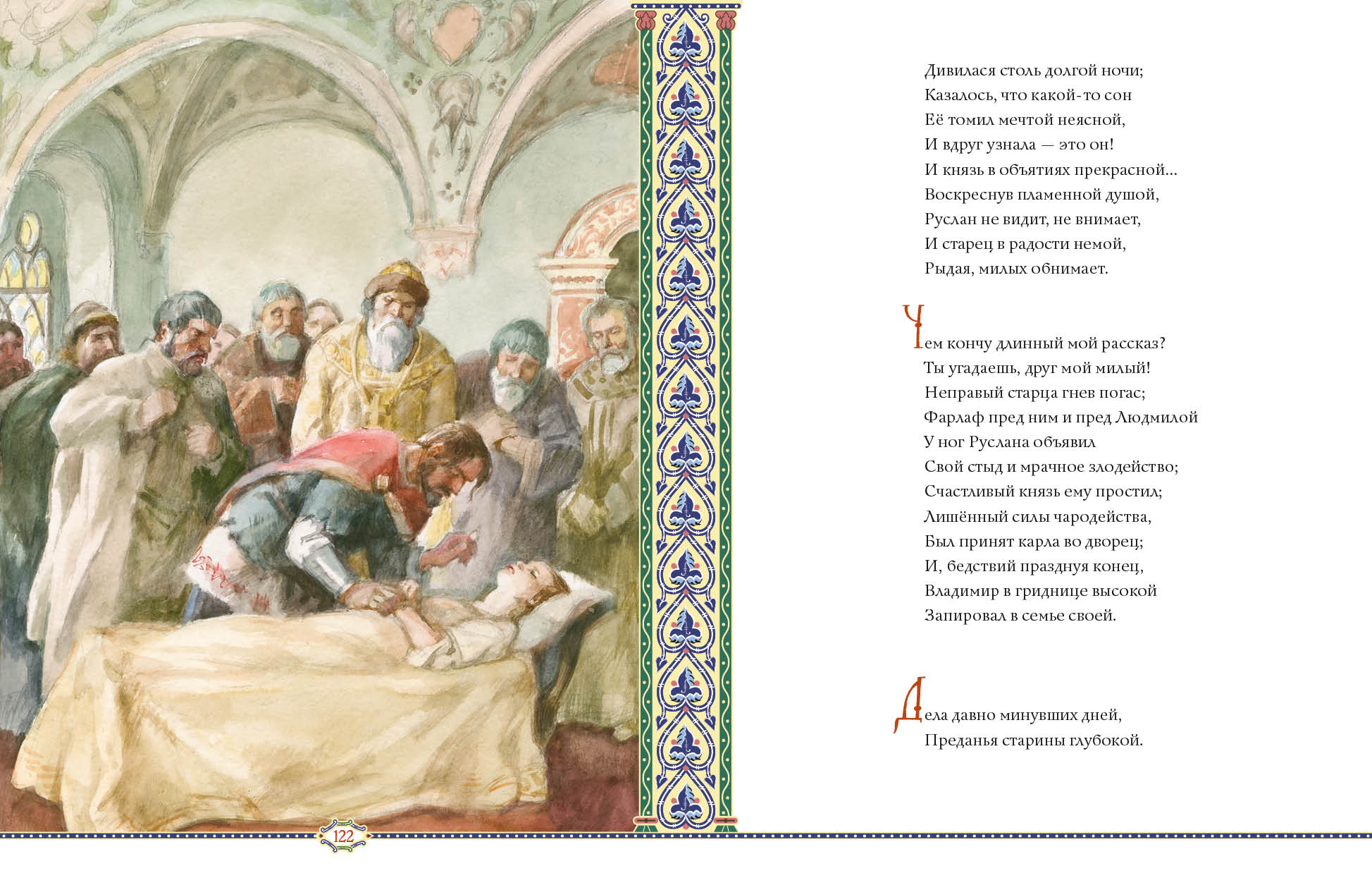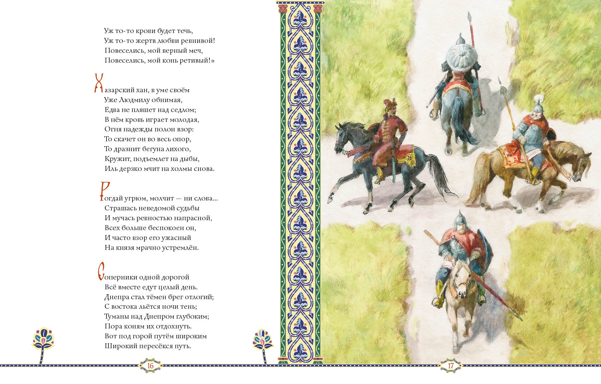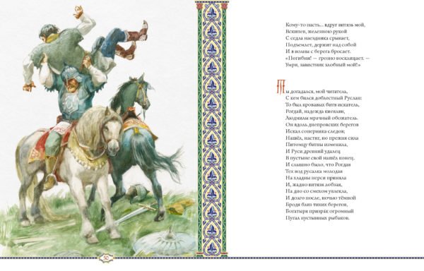 В этом произведении переплетаются героический эпос и лирические зарисовки, фольклорные мотивы и авторская ирония, складываясь в неповторимый многоцветный узор, а чарующая музыка пушкинских стихов завораживает читателя с первых строк. «Дела давно минувших дней, преданья старины глубокой» оживают в иллюстрациях художника Анатолия Зиновьевича Иткина.
