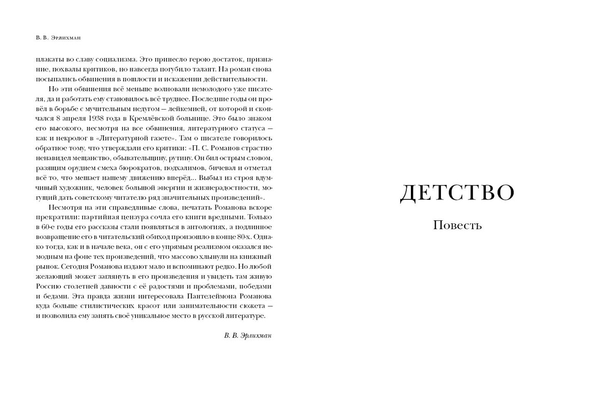 КнигиXX век оказался богат на талантливых деятелей искусства, несправедливо забытых в силу разных причин. Таким незаслуженно забытым был и Пантелеймон Сергеевич Романов — в 20-х годах прошлого столетия один из самых известных и издаваемых советских писателей. Он оставил богатое наследие — двенадцатитомное собрание сочинений, объединившее произведения разных жанров: романы, повести, рассказы, пьесы, реалистично отображающие современную автору эпоху со всеми её злободневными проблемами, ничего не приукрашивая, не выдавая желаемое за действительное.