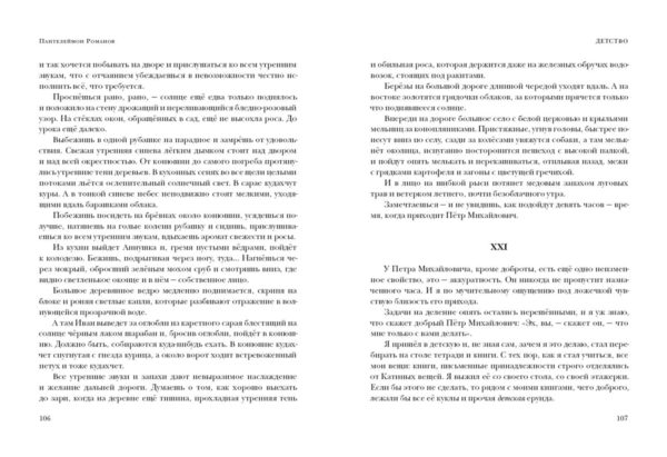 В предлагаемый читателю сборник вошли повесть «Детство» и ряд рассказов: «Русская душа», «Родной язык», «Итальянская бухгалтерия», «Смерть Тихона», «Чёрные лепёшки», «Огоньки», «У парома», «Хорошие люди» и многие другие. Повесть «Детство», богатая бытовыми зарисовками и картинами природы, показывает нам типичную деревенскую жизнь, увиденную глазами ребёнка — ярко, выпукло, со множеством подробностей. Герои рассказов Романова — обычные люди, раскрывающие в разных ситуациях свой сложный и противоречивый внутренний мир. Кто-то из них задумывается о смысле жизни и выборе пути, кто-то — о причинах неудач и своём месте в жизни, а кого-то волнуют вопросы любви и свободы личности. В книгу вошли и юмористические рассказы, и серьёзные психологические произведения, в которых сочетаются лиризм и ирония, а трагедия соседствует с сатирой. Читая сегодня рассказы Романова, мы слышим голоса той далёкой непростой эпохи, погружаемся в жизнь людей, отделённых от нас столетием, и сопереживаем их проблемам, заботам, тревогам и надеждам.