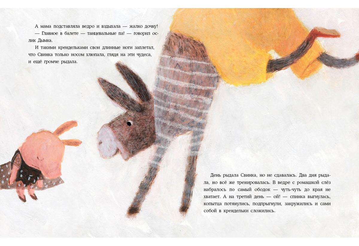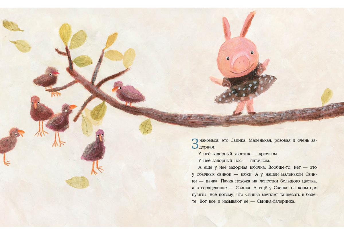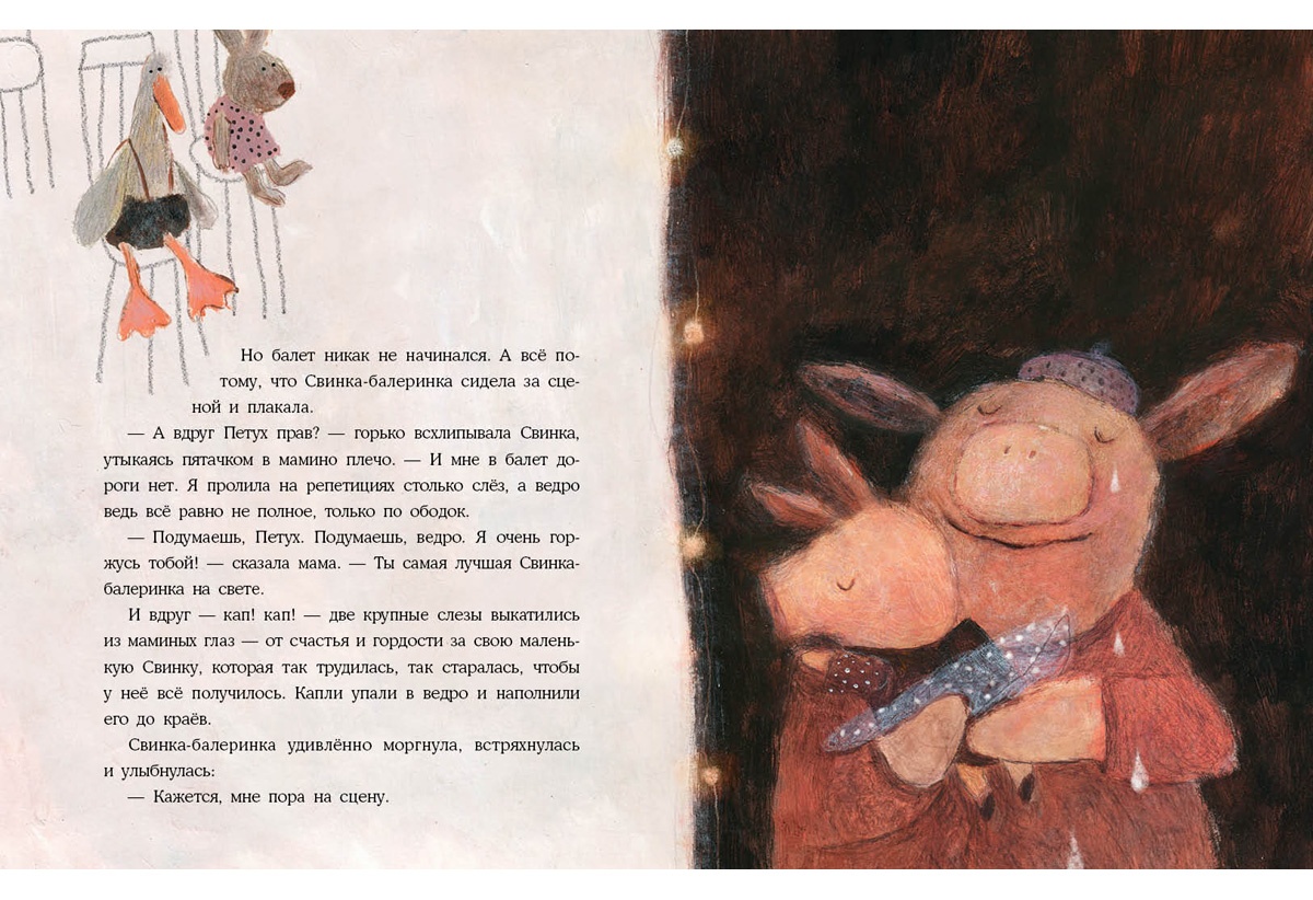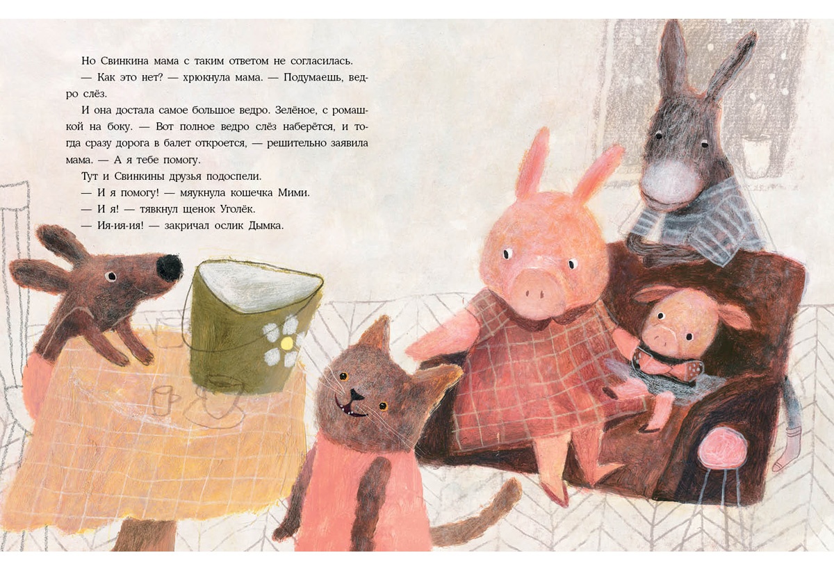 КнигиГероиня нашей истории — маленькая свинка. У неё есть настоящая мечта — танцевать в балете! Вот только все на ферме твердят, что в балет ей не попасть — даже Петух, самый главный артист… Говорят, сначала надо ведро слёз пролить! К счастью, заботливая мама и верные друзья не дадут Свинке-балеринке отчаяться и отказаться от своей мечты! С их помощью Свинка начинает непростой путь на сцену…