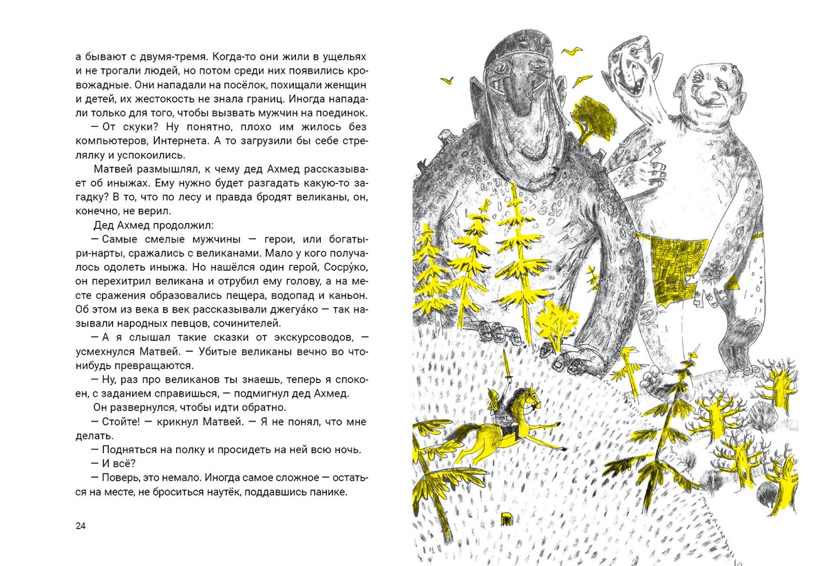 КнигиШестиклассник Матвей ещё месяц назад и подумать не мог, что проведёт весенние каникулы в маленьком горном посёлке, на тренинге по актёрскому мастерству — он ни в одном спектакле-то в жизни не участвовал! Но тренинг оказался интересным, ребята подобрались хорошие, и если бы не тяжёлые мысли, которые мучают Матвея, всё было бы и вовсе отлично. Неожиданно в отеле начинают происходить странные и пугающие вещи. Чтобы спасти друзей от грозящей им опасности, Матвею приходится встретиться с ожившими персонажами адыгских сказок и легенд. В этом круговороте фантастических событий мальчику предстоит разобраться со своими страхами и ответить на непростые вопросы, которые он боялся задать самому себе.