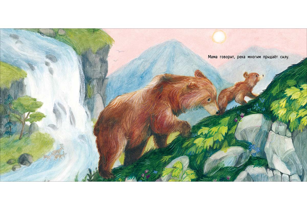 КнигиМаленький медвежонок живёт в лесу с мамой-медведицей. Он открывает для себя удивительный мир и мечтает вырасти большим и сильным, а мама поддерживает его во всём. Она учит малыша находить ягоды, ловить рыбу, переправляться через бурные реки- Медвежонок любит маму — и, наблюдая за ней, делает важные открытия.