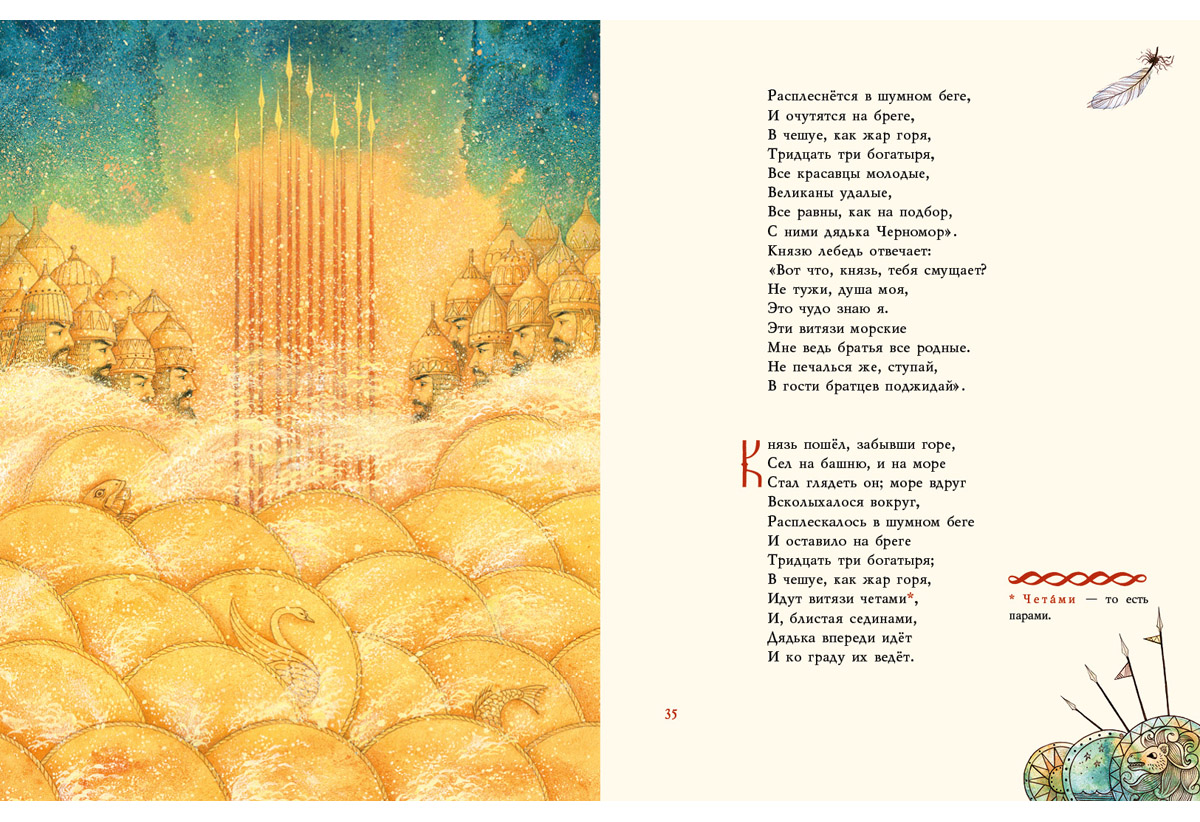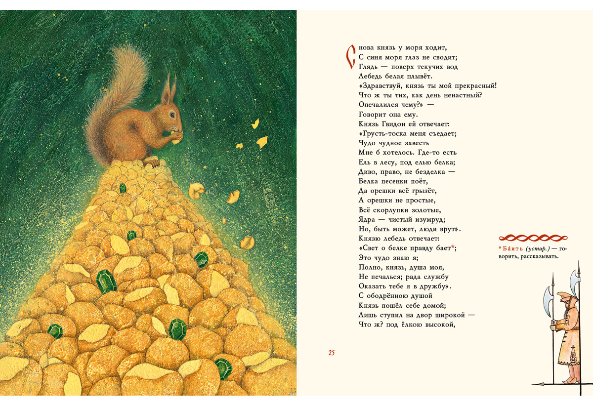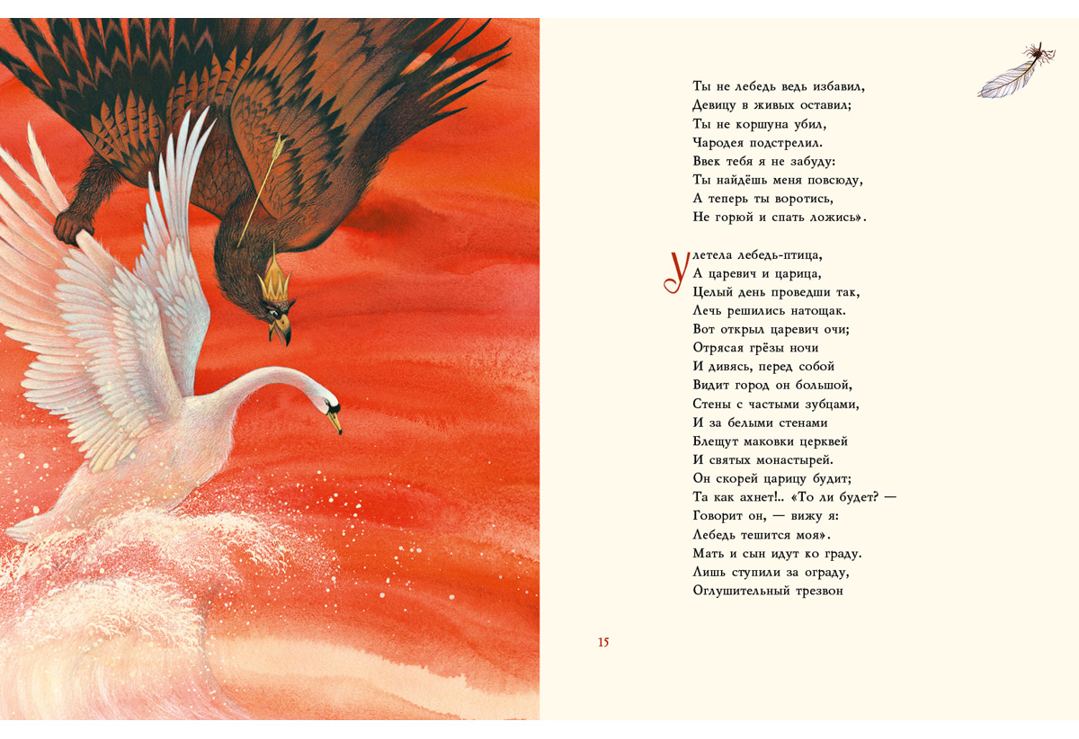 КнигиДля многих поколений знакомство с русской литературой началось со сказок Александра Сергеевича Пушкина. «Сказка о царе Салтане…», написанная в 1831 году, по праву считается венцом творчества поэта. Это любимая и знакомая с детства история о женитьбе царя Салтана, о завистливых сёстрах царевны и жадной бабе Бабарихе, о доблестном князе Гвидоне и его прекрасной невесте Лебеди.