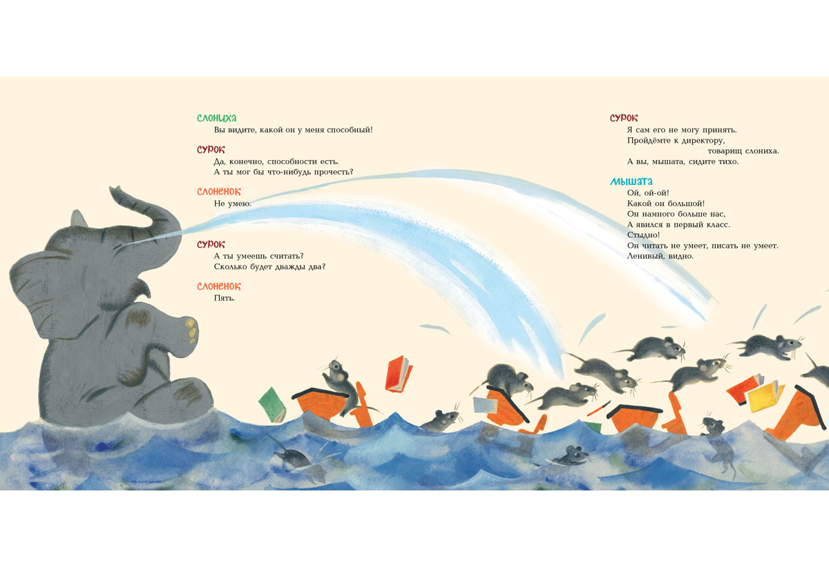 КнигиПеред вами прекрасная весёлая сказка в стихах о маленьком слонёнке, который захотел учиться в школе. Но школы для слонов поблизости не оказалось, и слонёнок оказался в школе для мышей-Мыши сначала с недоверием отнеслись к новому ученику, но потом они подружились и помогли славному и доброму слонёнку освоить чтение. А слонёнок научил их играть на трубе.