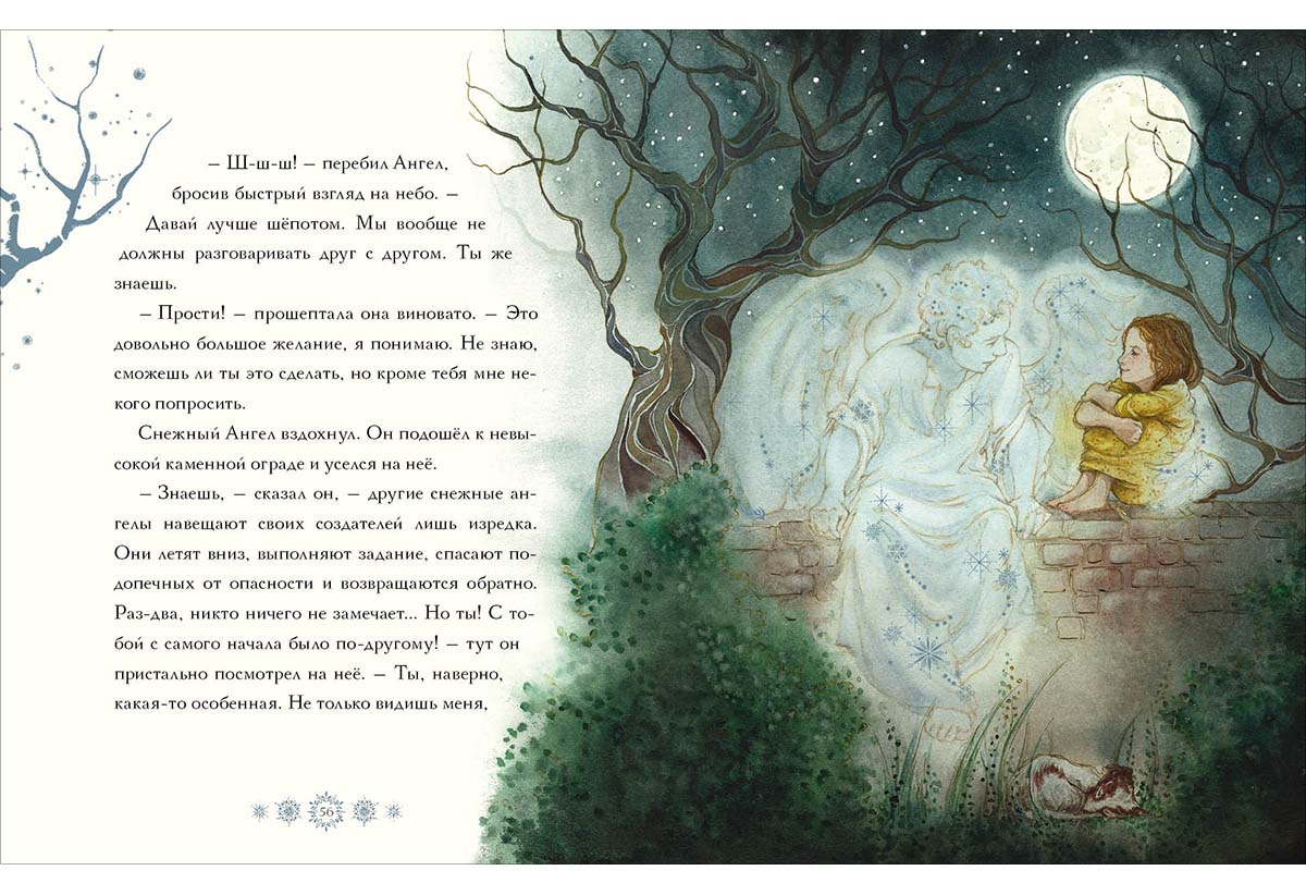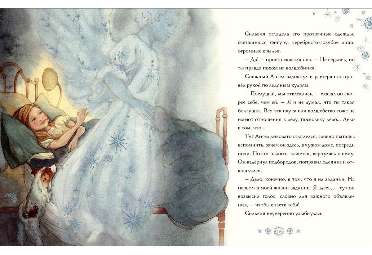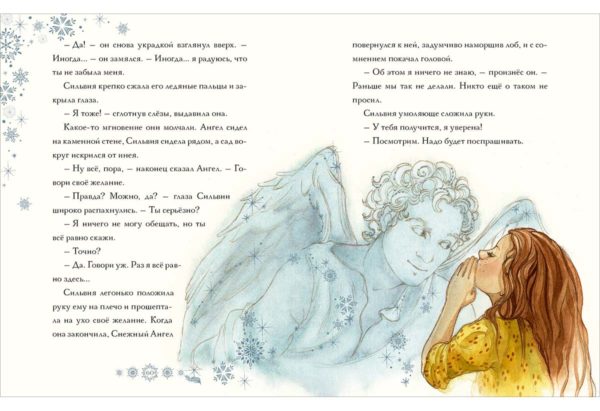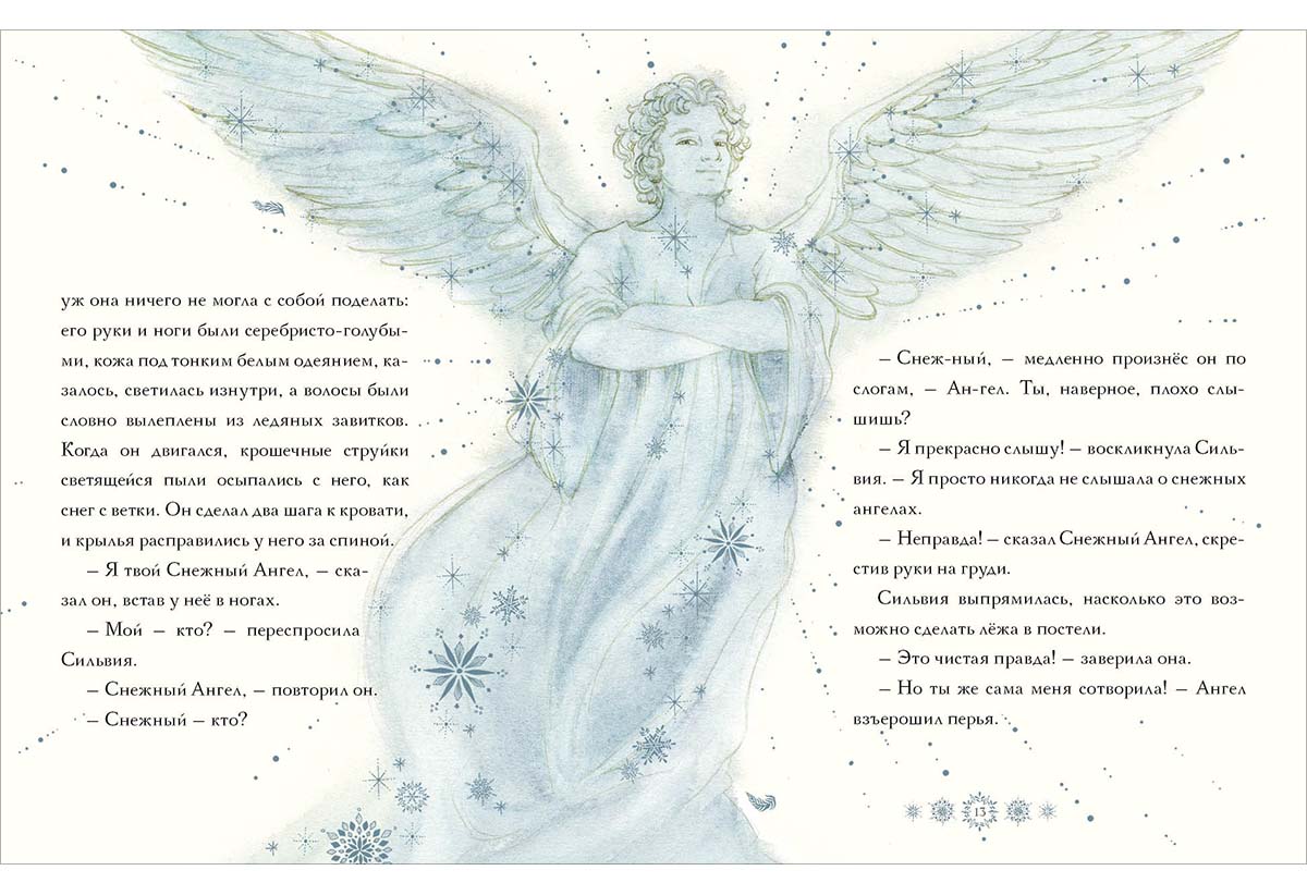 КнигиСлучалось ли тебе когда-нибудь неожиданно проснуться ночью, и… увидеть рядом загадочного незнакомца, будто сотканного из невесомой снежной ткани? Именно это произошло с маленькой Сильвией, и сначала она испугалась не на шутку! Но новый знакомый и сам растерялся: ведь он был самым настоящим снежным ангелом и спустился с небес, чтобы спасти Сильвию! Но разве ей грозит какая-то опасность?..