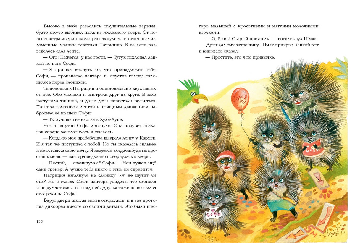 КнигиГлубоко в джунглях затерялся город Хула-Хуп, населённый животными. Там живёт юная слониха Софи. Она выступает в цирке и мечтает стать настоящей гимнасткой, но её неуклюжесть только смешит зверей. Однажды Софи получила письмо с загадочными словами: «Иди только вперёд». Что бы это значило? Софи стала тренироваться с удвоенным рвением, но после очередной неудачи так расстроилась, что решила больше не возвращаться в цирк. Она и подумать не могла, что всё самое интересное только начинается!..