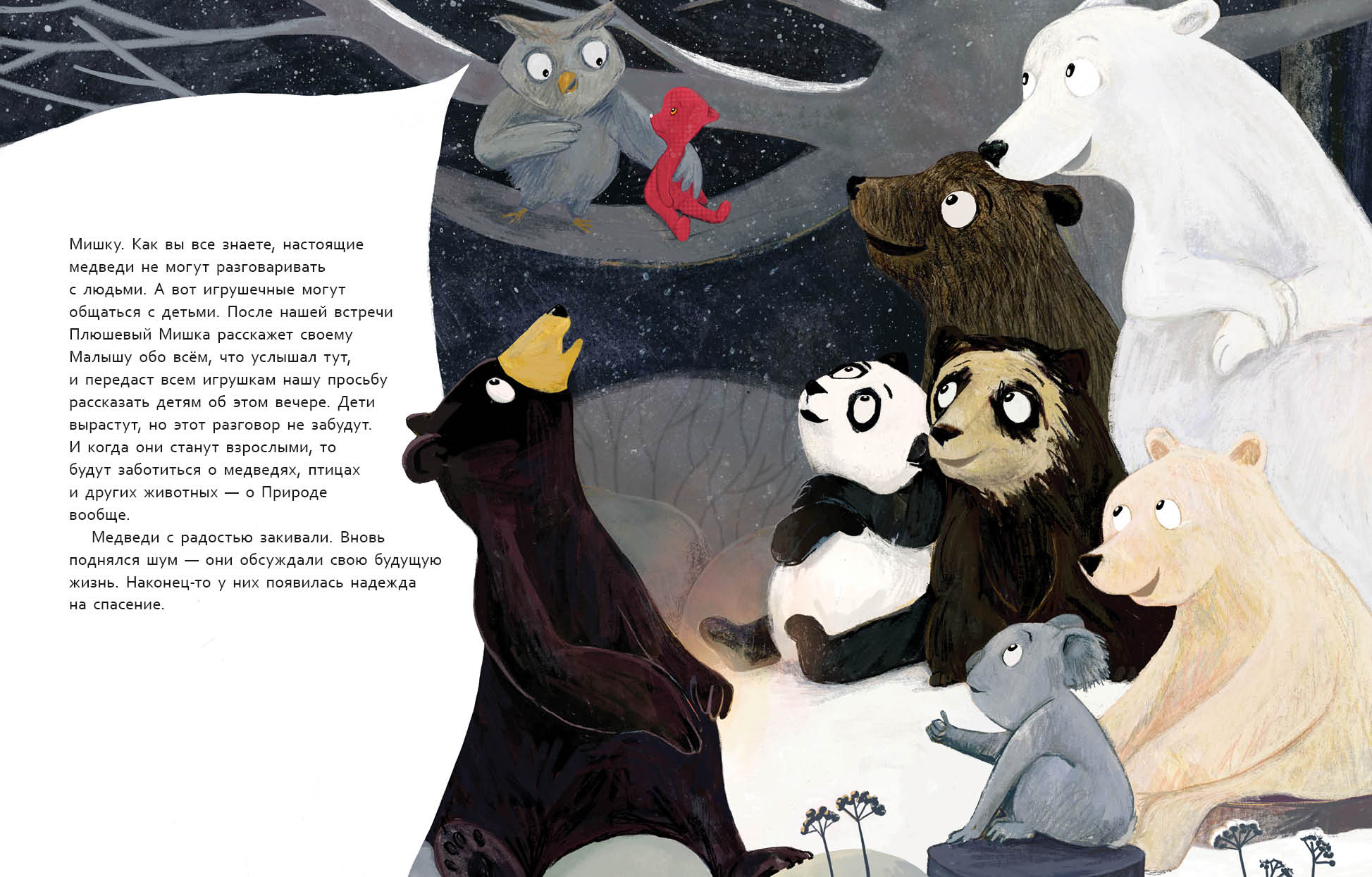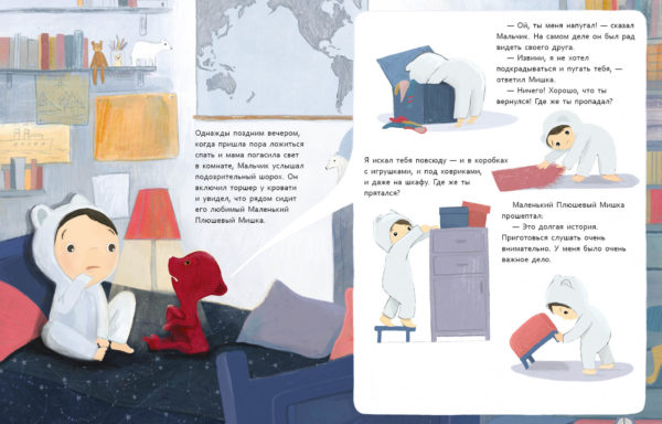 КнигиМальчик повсюду искал своего любимого Плюшевого Мишку. А что, если он не потерялся, а отправился в далёкое путешествие на важное собрание, куда пришли медведи со всех концов света? Что ждёт его на встрече с большими и суровыми медведями? И самое главное — зачем туда позвали Плюшевого Мишку?