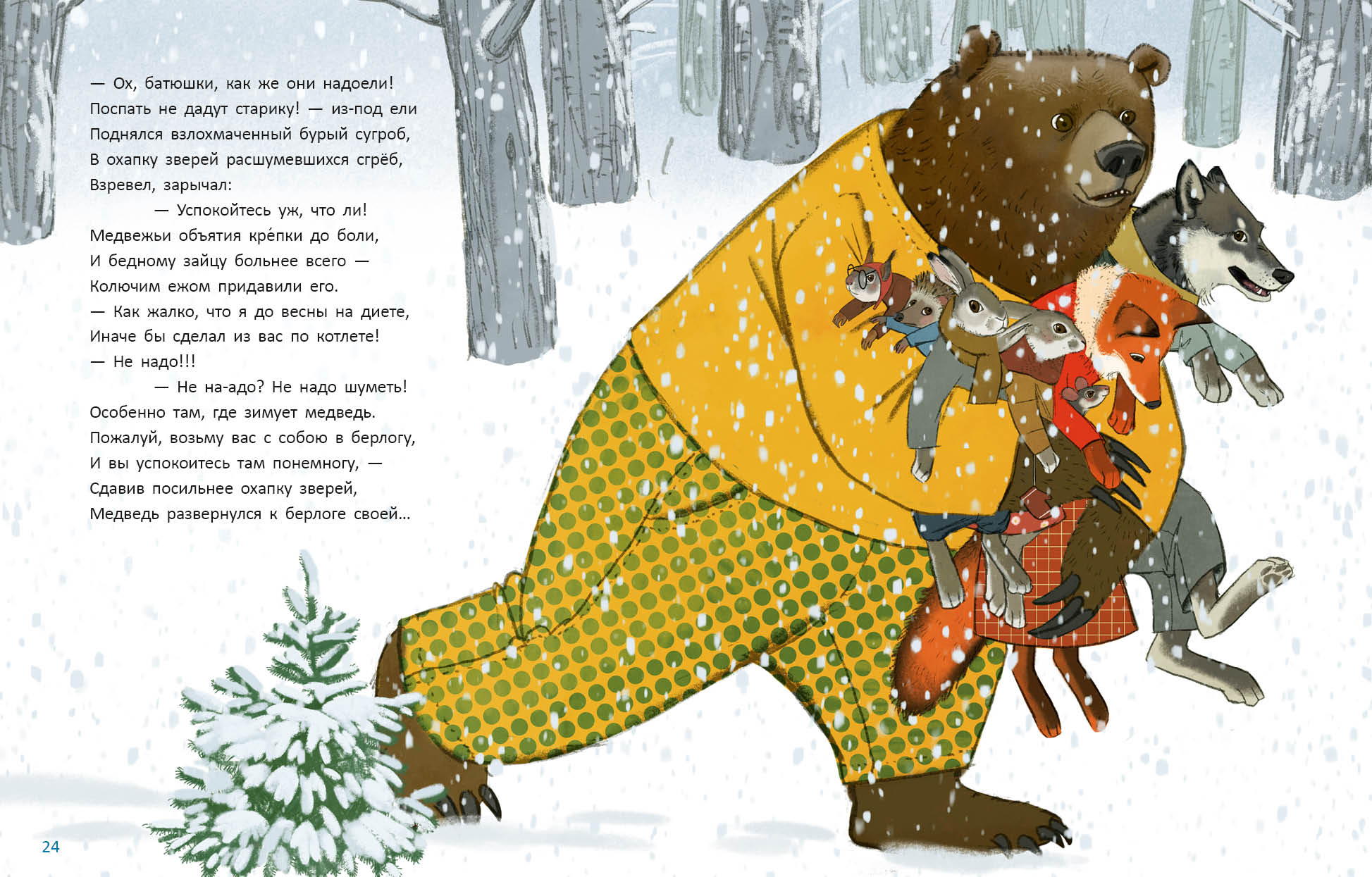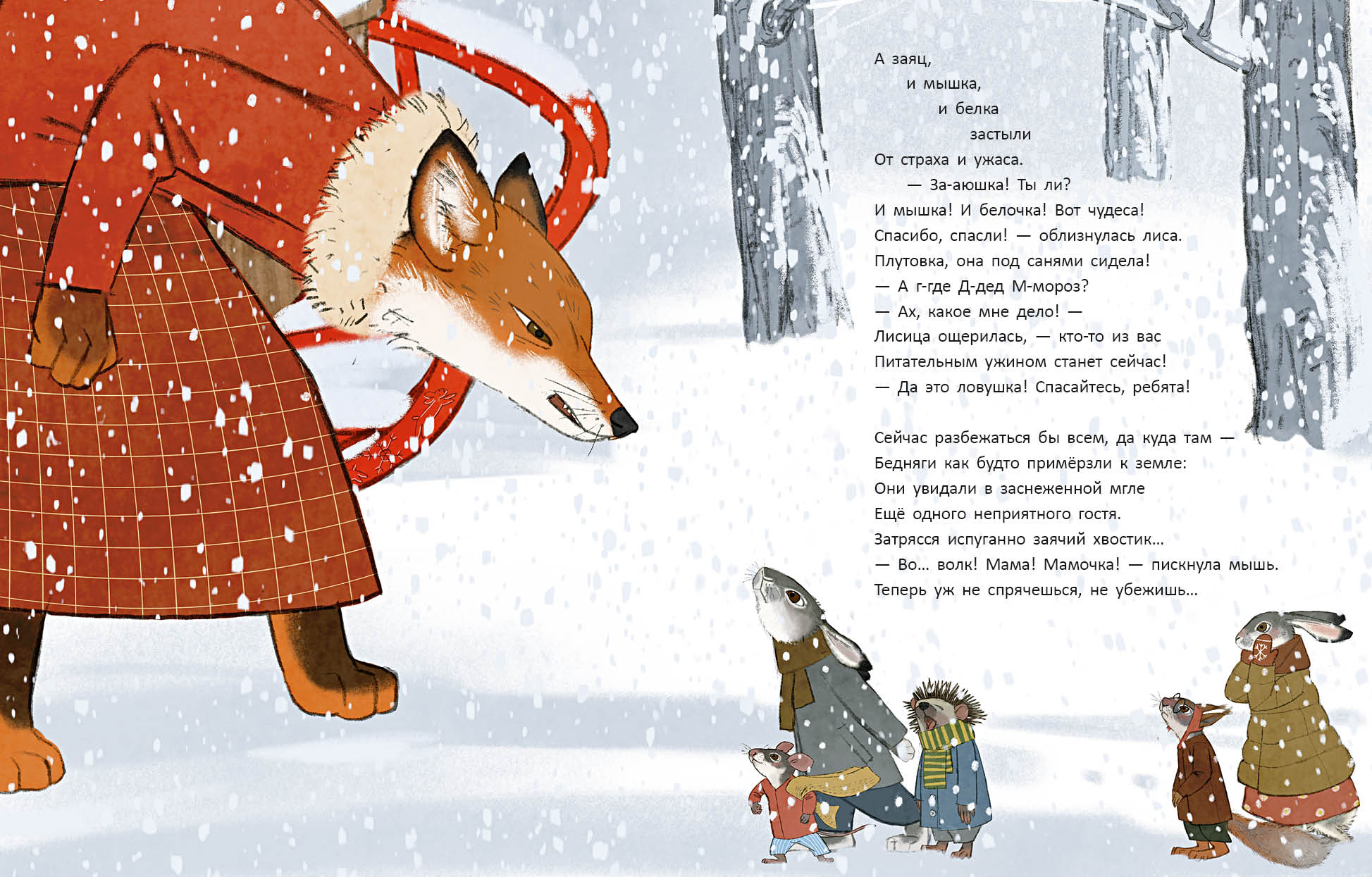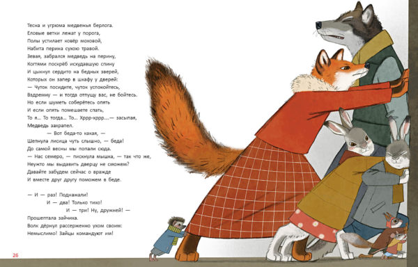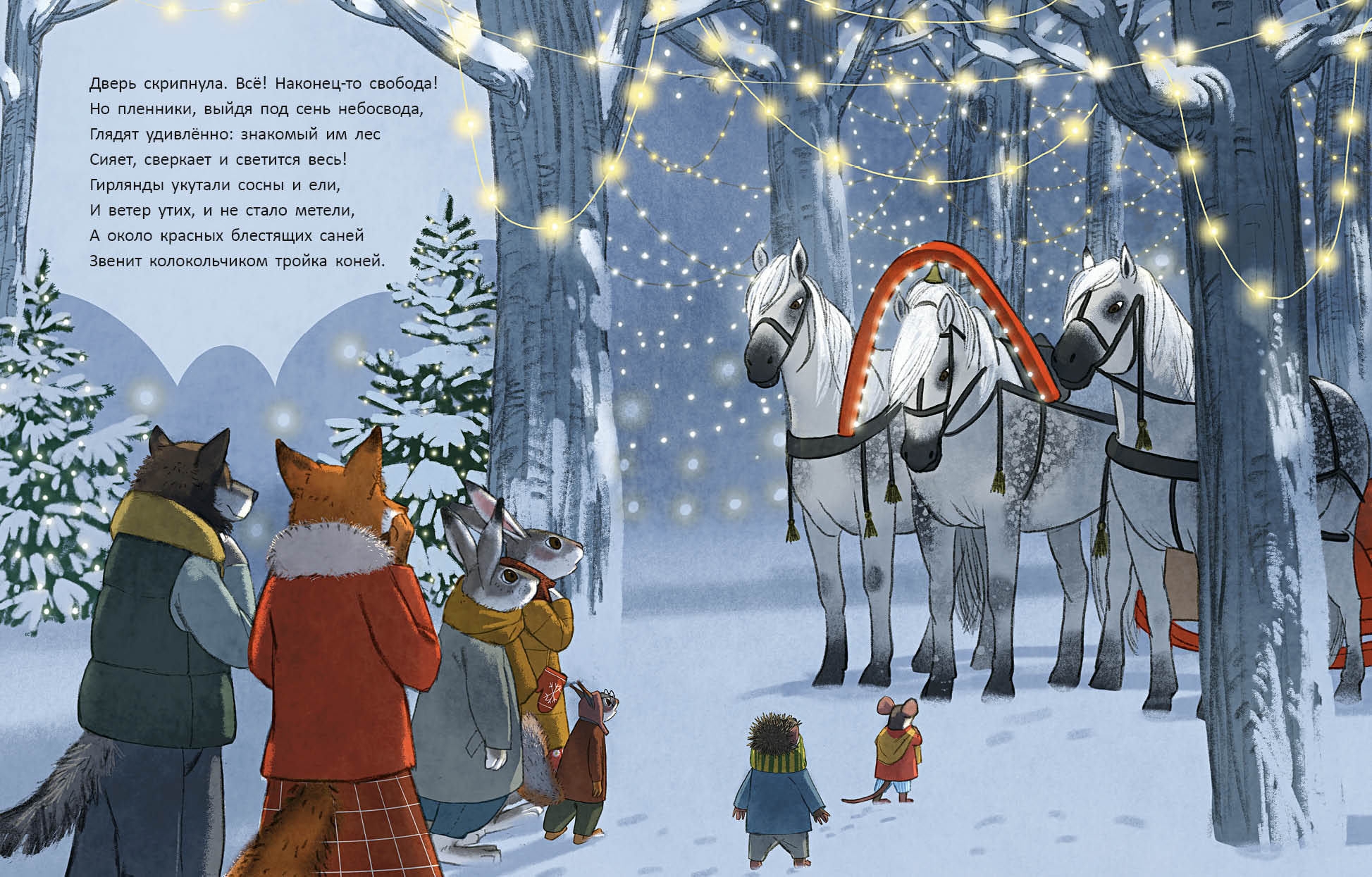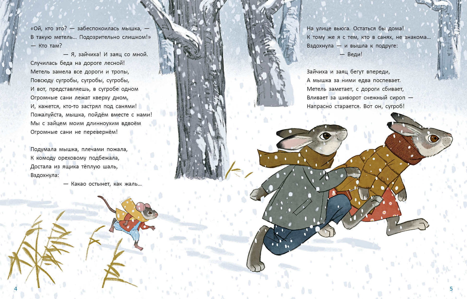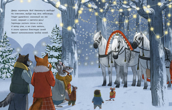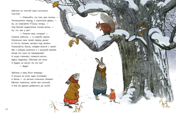 КнигиВ канун Нового года мышка услышала стук в дверь. Это стучали взволнованные заяц и зайчиха. В лесу случилась беда! Метель замела все дороги и тропы, повсюду лежали сугробы. Зайцы нашли перевёрнутые сани, а под ними кто-то застрял!