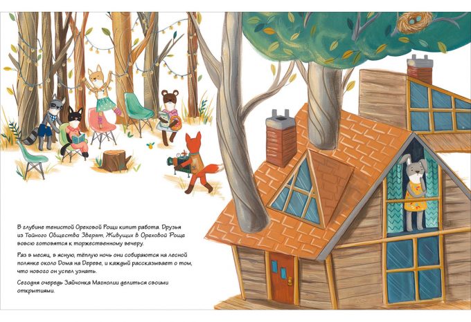 КнигиТайное Общество Зверят, Живущих в Ореховой Роще, собирается раз в месяц на лесной полянке, чтобы поделиться друг с другом своими новыми открытиями.