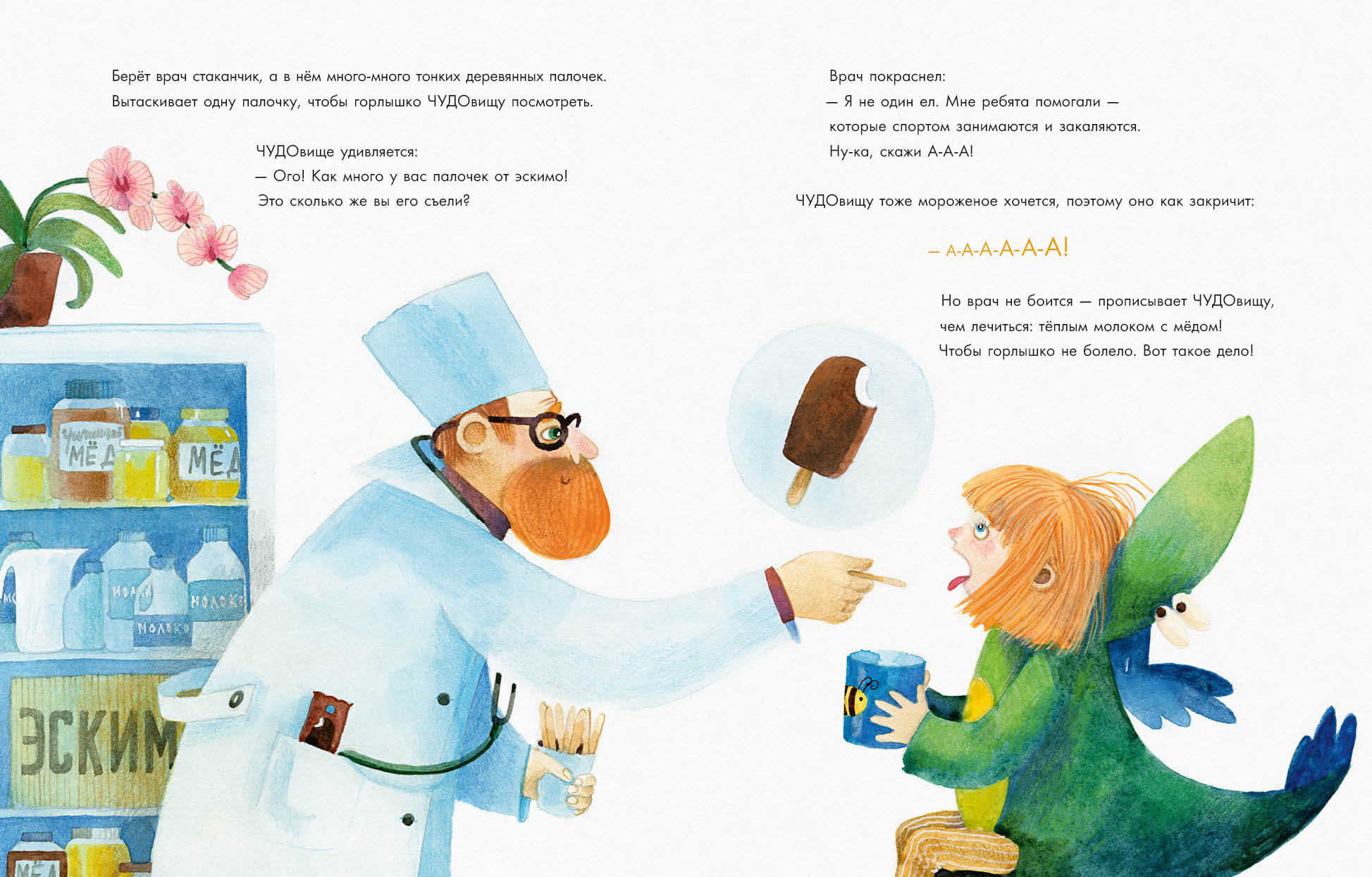 КнигиОднажды у ЧУДА заболел животик. Но оно не давало врачам осмотреть себя — рыдало и даже дралось! Врачи прозвали его «маленьким ЧУДОвищем». Они стали лечить капризное «ЧУДОвище» и обратно превращать в настоящее и счастливое ЧУДО — папино и мамино!