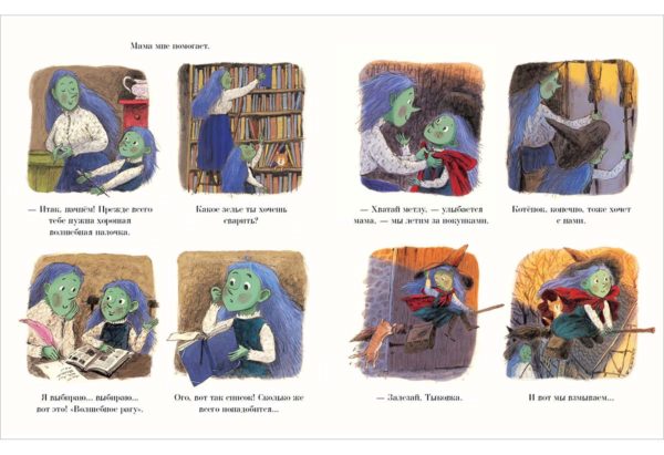 КнигиСегодня у юной ведьмочки Бетти очень ответственный день: она будет варить первое в жизни зелье! Но сначала ей нужно раздобыть множество непростых ингредиентов. Вместе с мамой и котёнком Тыковкой Бетти отправляется в захватывающее путешествие, чтобы собрать лунные лучи и молнии, пыльцу с крыльев фей, усы оборотня и волосы тролля. Но приключения на этом не закончатся — оказывается, сварить зелье тоже не так-то просто…